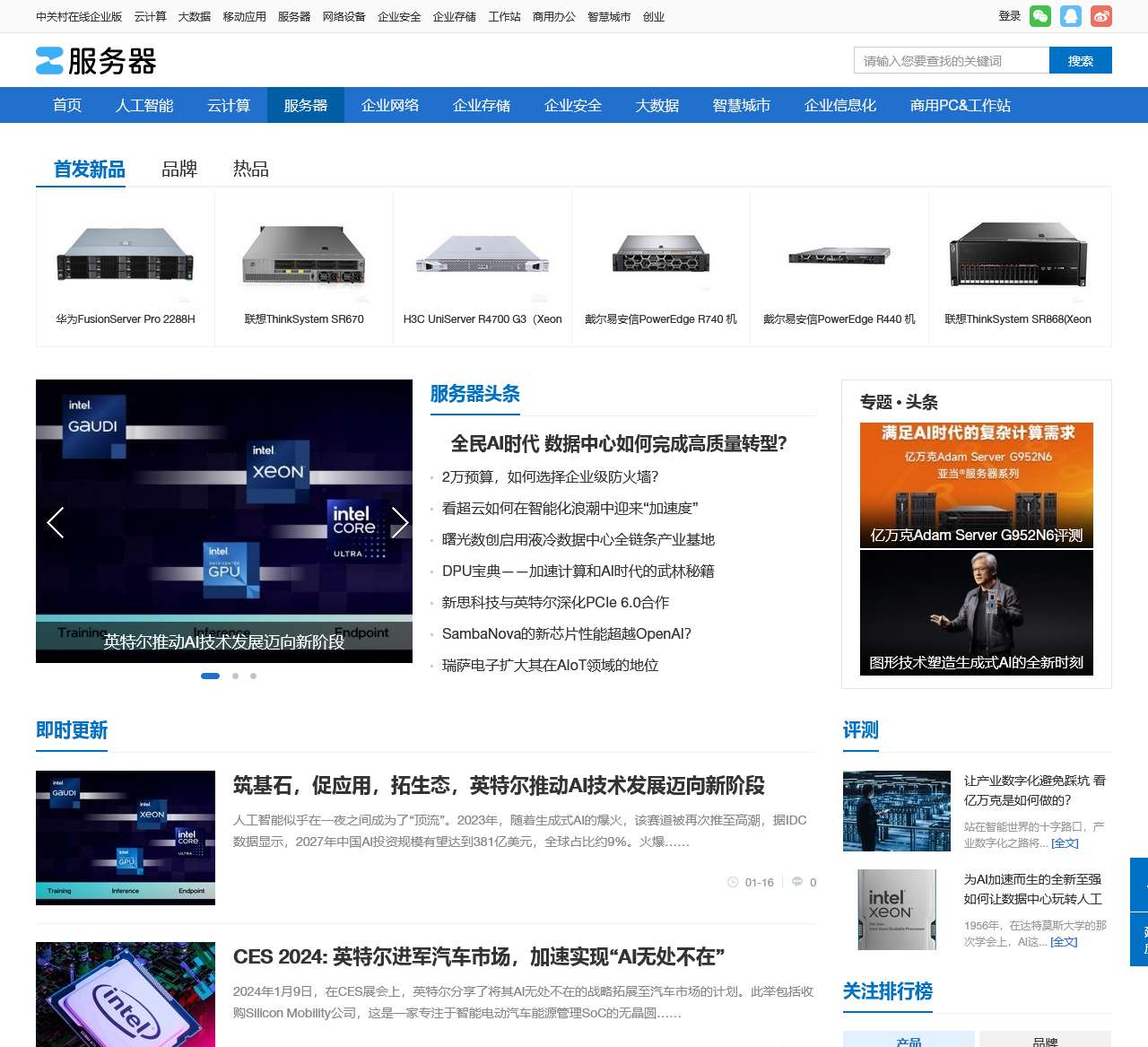 欢迎来到中关村在线企业版的服务器频道,您的一站式信息平台,涵盖云计算、大数据、移动应用、服务器、网络设备、企业安全、企业存储、工作站、商用办公、智慧城市、创业等领域。在这里,我们为您整理了一系列热门服务器品牌和型号,以及最新的技术趋势和行业动态。