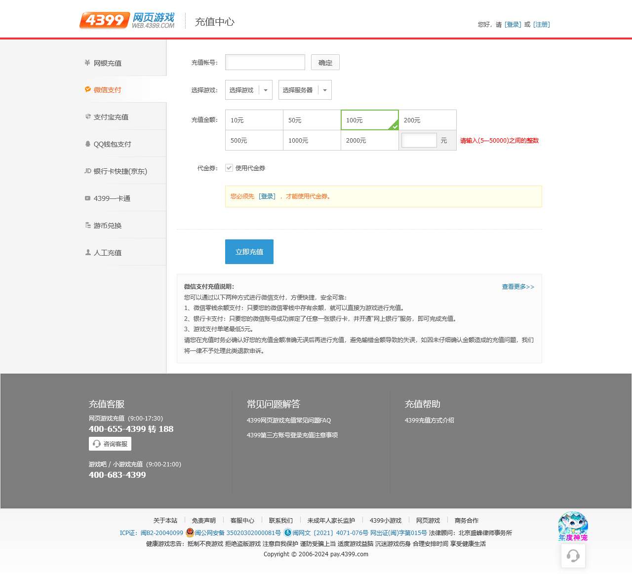 4399网页游戏充值中心