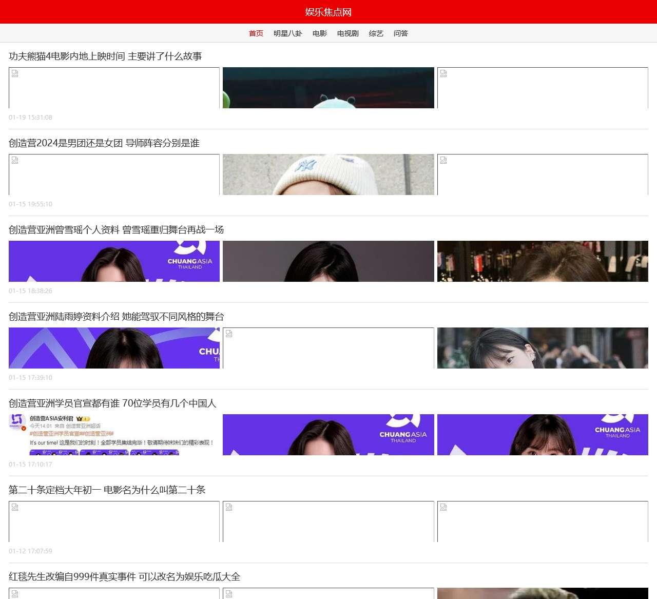 娱乐焦点网为您报道最新的综艺节目动态,包括创造营2024等热门综艺。详细介绍导师阵容、参赛选手资料,让您更深入地了解每档综艺的精彩之处。