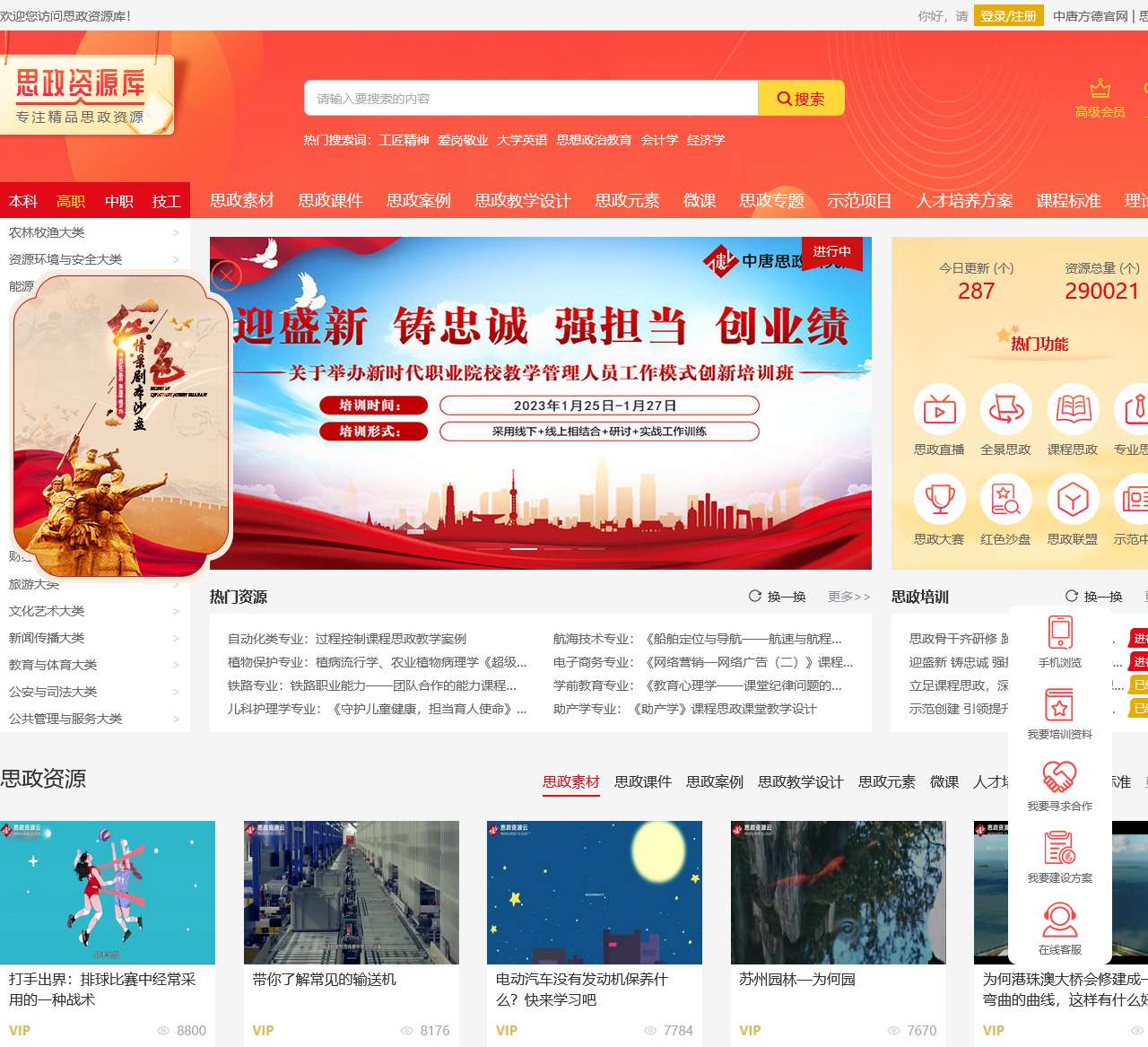 思政研究院涵盖多个专业领域,提供了各专业的课程思政案例,如自动化类专业、植物保护专业、铁路专业等,以示范项目和专业思政为重点,打造职教线上“金课”。