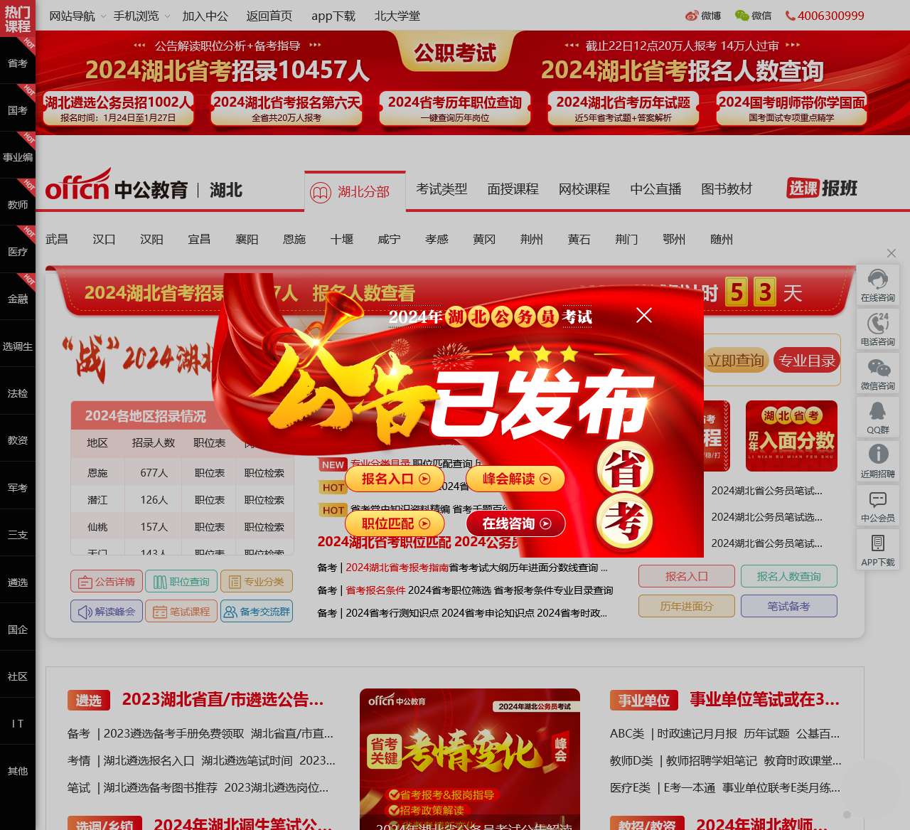 湖北中公教育网提供2024国家公务员考试报名入口及和时间,2024国家公务员考试职位表下载,2024湖北公务员考试时间安排,2024湖北事业单位招聘考试信息,湖北教师教师考试公告,省考报名时间,省考职位表、准考证、成绩、笔试面试,公务员培训机构。