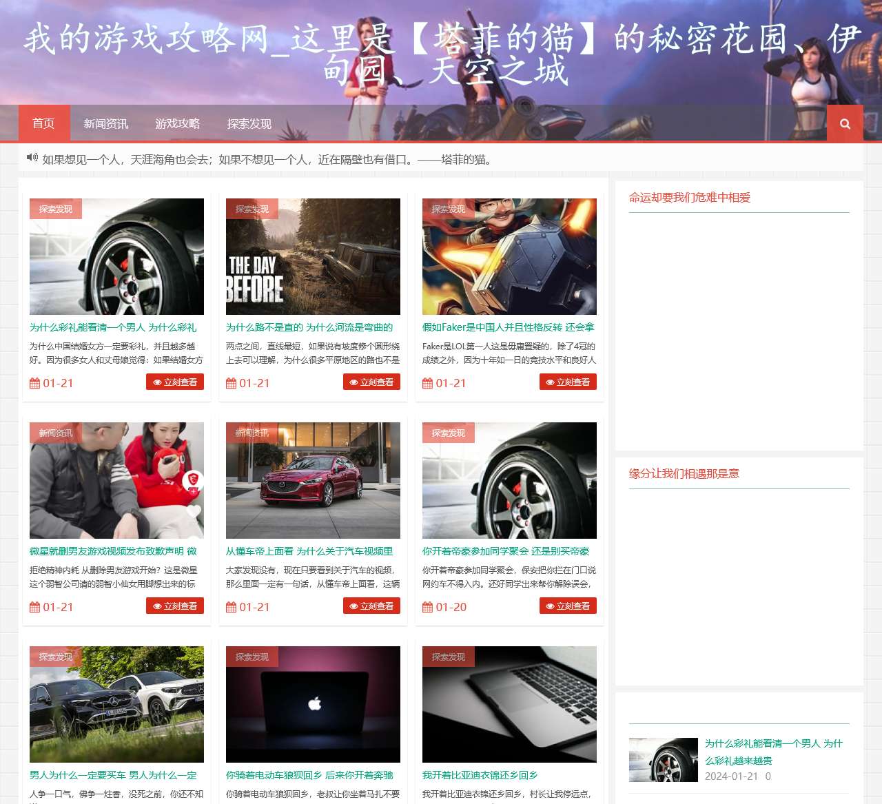 我的游戏攻略网是一个专注于提供最新游戏资讯和详细游戏攻略的平台。我们自豪地呈现【塔菲的猫】的秘密花园、伊甸园、天空之城等精彩内容,为广大游戏爱好者打造了一个探索发现游戏世界的理想场所。