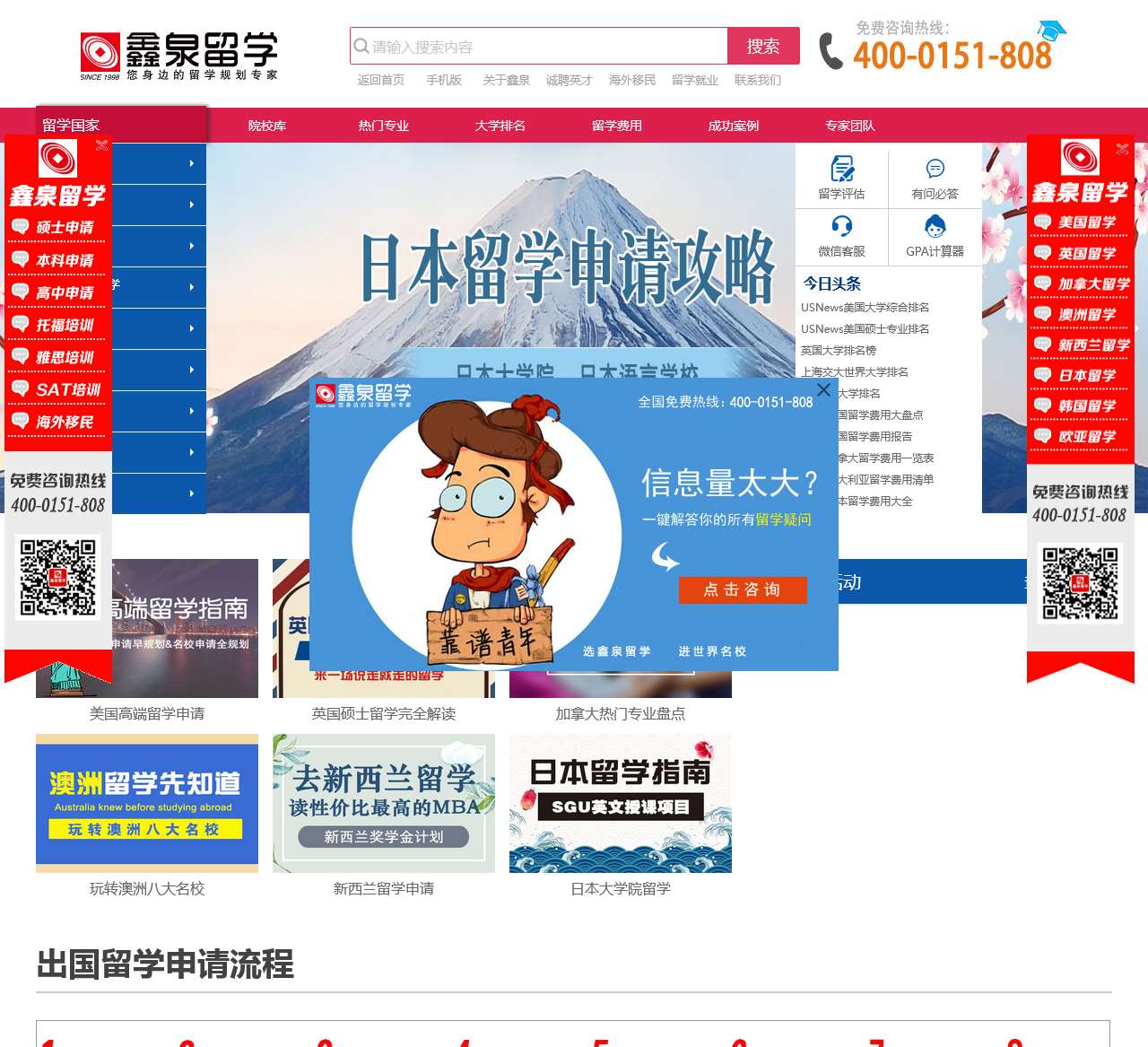 鑫泉留学,全国十佳留学中介机构,15年专业留学申请经验,500位海归留学咨询专家,1000所海外合作院校,30000多个成功出国留学案例.免费出国留学咨询电话:4000-151-808
