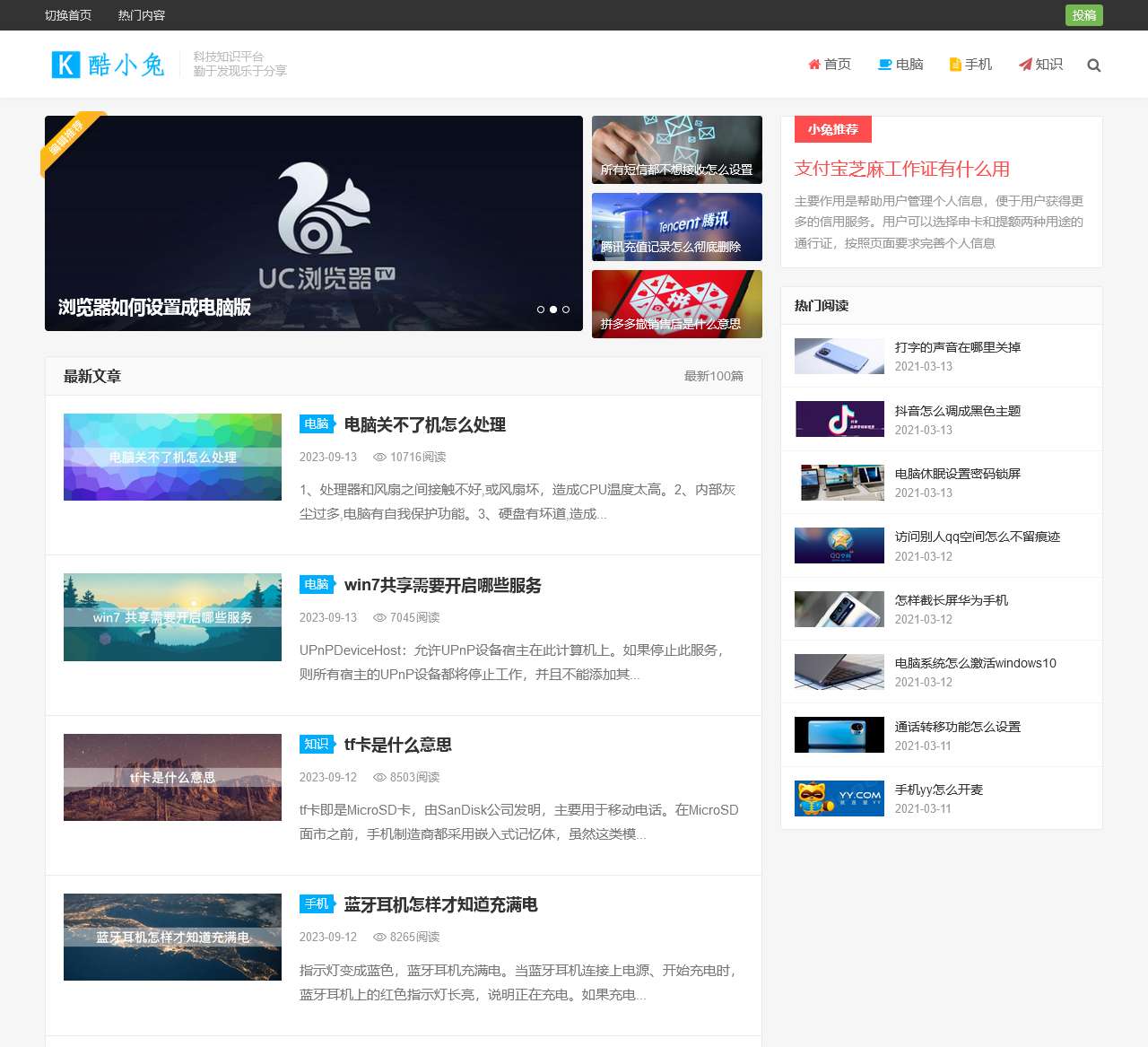 欢迎来到酷小兔,一个专注于科技知识领域的平台。我们致力于为用户提供最新、最实用的科技信息,助您更好地探索数字世界。以下是一些我们网站上的热门内容: