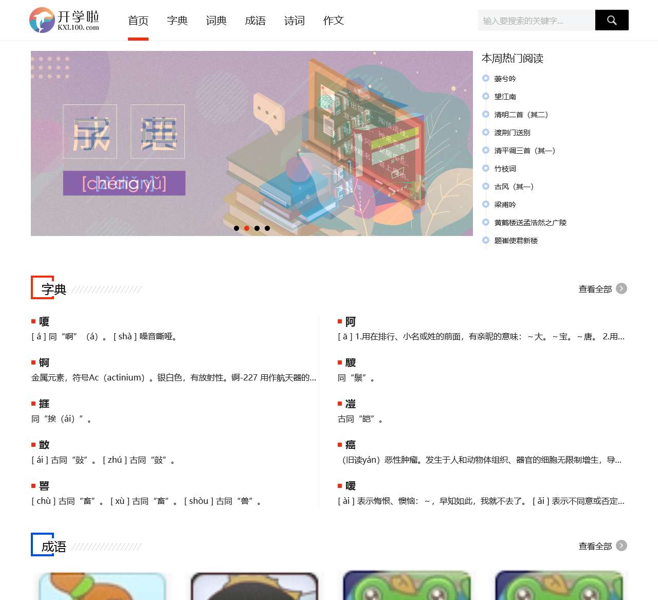 在这里,您可以轻松查询字典,丰富您的词汇库;探索成语的深刻寓意,为您的语言表达增色;感受诗词的美妙意境,激发创作灵感;同时,我们还提供丰富的作文素材,助您练就一手优秀的写作技能。
