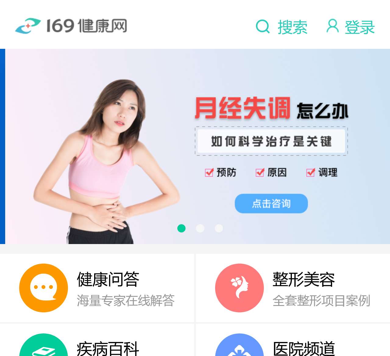 欢迎访问169健康网,国内优质健康门户网站。我们致力于为用户提供全面、专业的健康服务,涵盖健康问答、整形美容、疾病百科、医院频道以及健康资讯等多个领域。在这里,您可以随时随地获取健康信息,解答专业问题,了解最新医疗资讯,全方位关注您的健康。