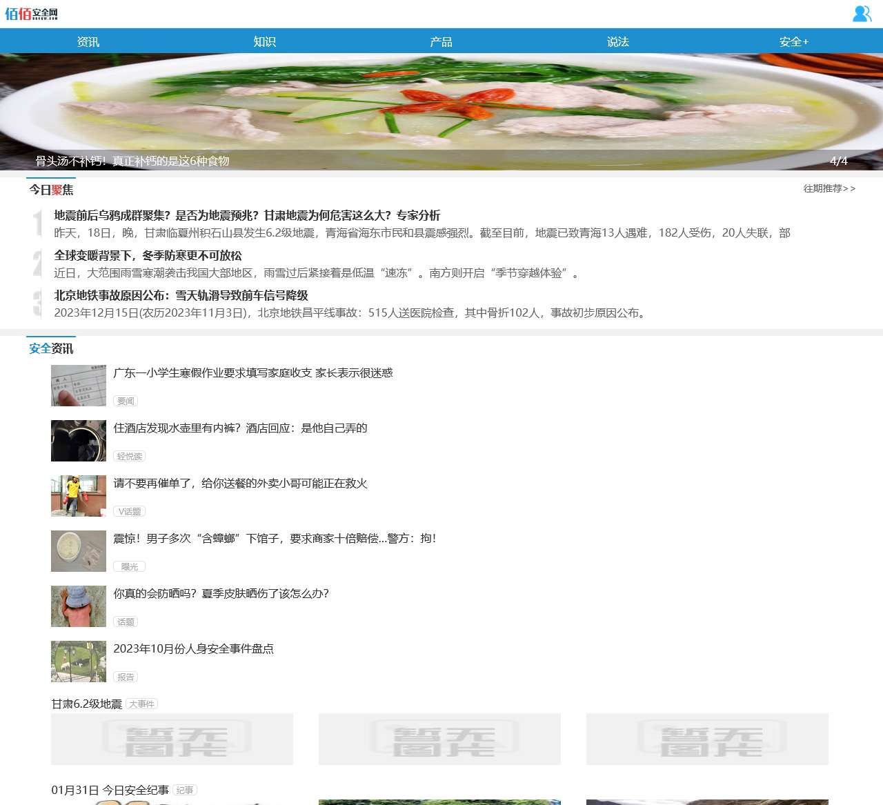 【佰佰安全网】-国内首家专注百姓生活安全知识普及交流互动平台。内容涵盖:国内外安全要闻,安全知识讲解,安全事故案例分析,安全知识问答等。提供各种安全小常识,有校园安全知识、出行安全知识、居家防火安全知识等。