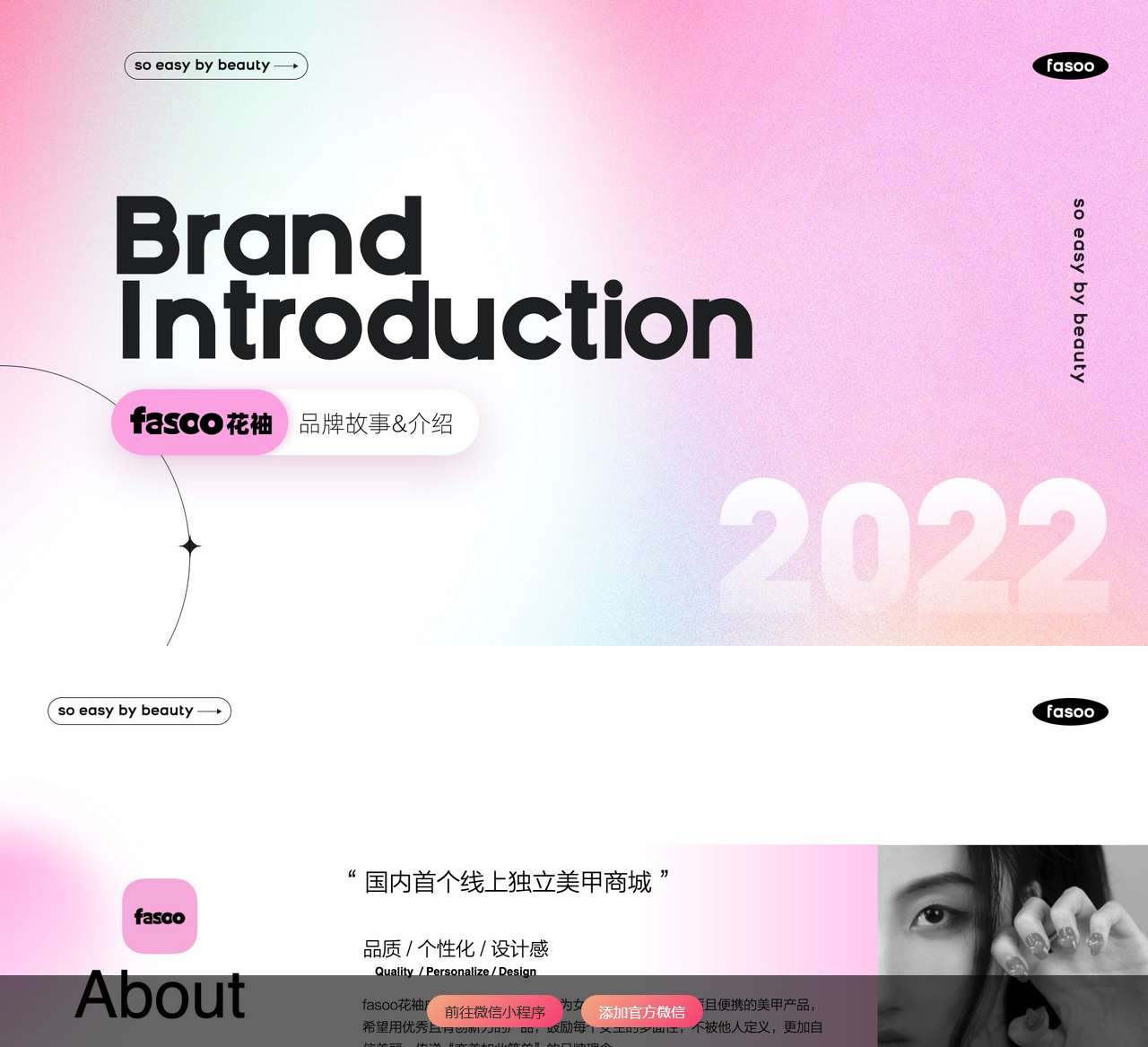 Fasoo花袖,年轻且有质感的手工美甲穿戴甲品牌,在花袖,你可以找到任何适合你的美甲穿戴甲风格,花袖凭着对品质的苛刻要求,不断追求美甲穿戴甲的极致舒适性,每一片匠心而做.让每一个女生都能随时随地穿戴美丽和自信。