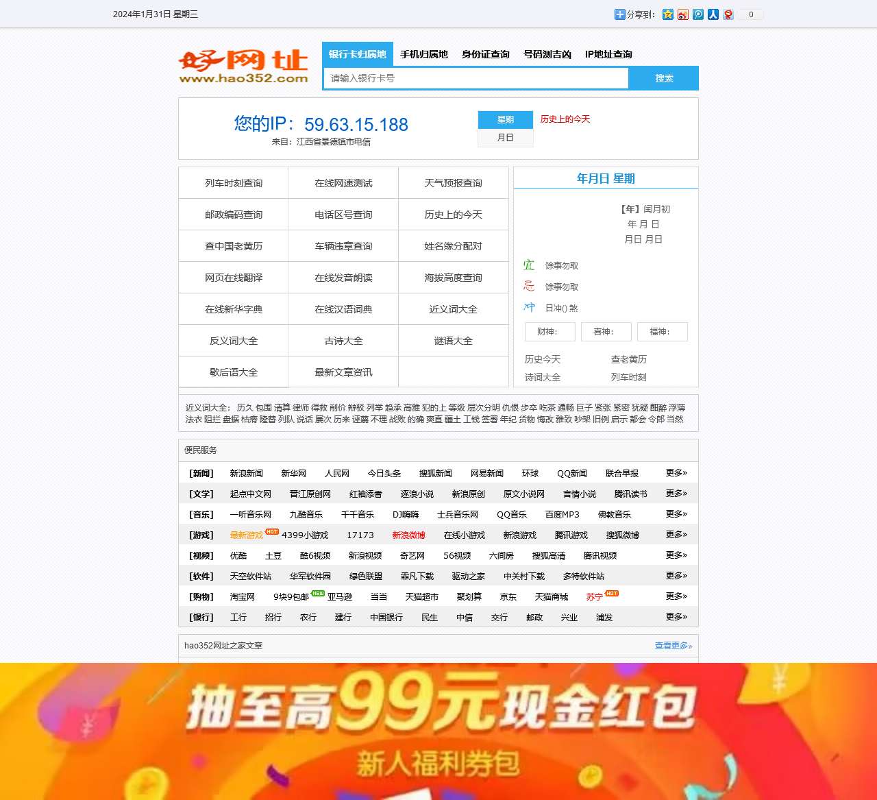 hao352上网主页—网民喜欢的娱乐,生活,学习网址搜索导航站,及时收录音乐、视频、小说、游戏、教育、体育、女性、新闻、电影、购物、门户网等热门分类的优秀网站,与搜索完美结合,提供最简单便捷的绿色安全上网导航服务,成为广大网民的上网主页首选网站。今天网络改变你我生活,明天hao352改变你我上网习惯!