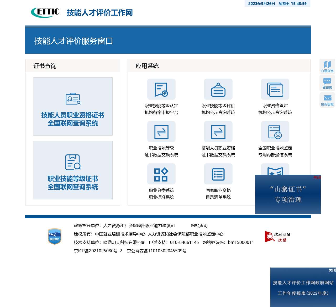 职业技能等级评价机构公示查询系统:该系统提供职业技能等级评价机构的公示信息查询服务,用户可以了解评价机构的资质和业务范围。