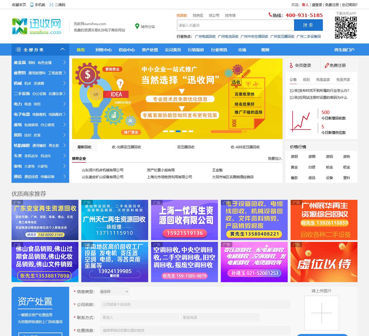 迅收网是一家专业的二手设备、再生资源、废品回收的B2B交易平台,旨在为回收行业提供便捷的信息发布、交流与合作平台。通过回收中心、供应中心、公司黄页等功能板块,用户可以轻松地发布和搜索相关信息,实现资源的高效流通。
