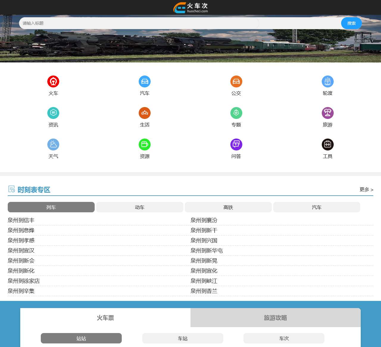 火车次为您提供各大城市火车时刻表查询、火车票价查询、火车票预订、火车票预订电话等信息,还有汽车时刻表查询、公交查询、天气预报查询等,为您的出行带来便利。