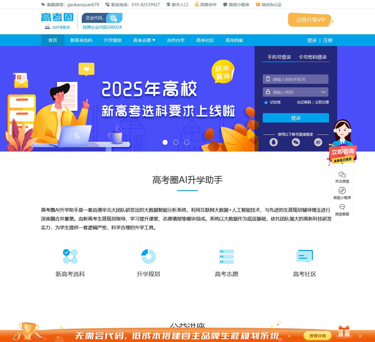 欢迎来到高考圈官网,2023高考志愿填报的首选平台。我们致力于为广大学生提供全面的升学规划和志愿填报服务,协助你找到理想的大学,选择合适的专业,规划成功的职业生涯。通过我们的微信小程序和专业培训认证,你将获得更全面、深入的高考信息和咨询。