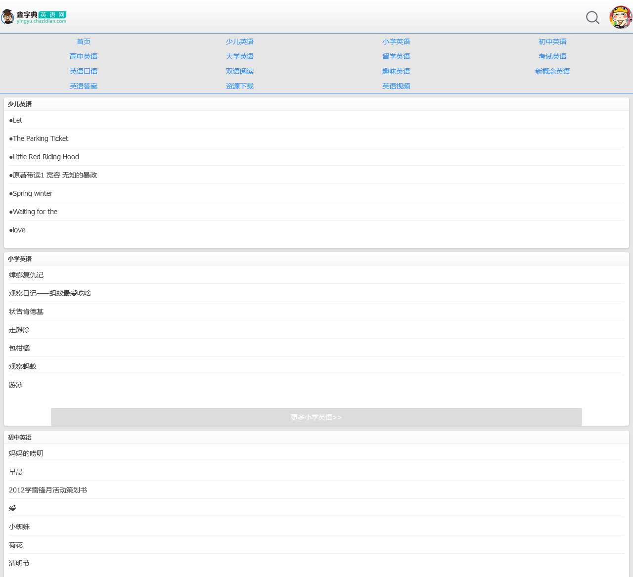 查字典英语网 (Chazidian English) is your comprehensive online resource for English learning, catering to various age groups and proficiency levels. Our website covers a wide range of content, including children’s English, elementary school English, middle school English, high school English, university-level English, study abroad English, and exam preparation.