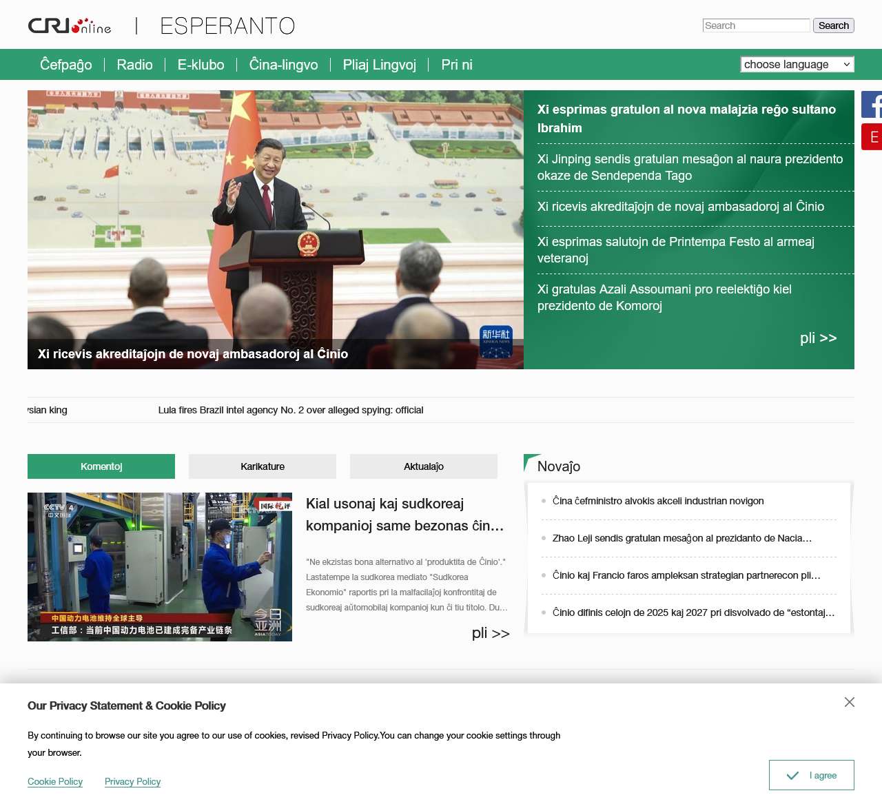 Bonvenon al ESPERANTO, via porda fenestro al la plej novaj kaj signifaj eventoj en la mondo. Ni estas ĉiutaga fonto de aktualaĵoj kaj informoj pri diversecaj temoj, inkluzive de Ĉina-lingvo, pliaj lingvoj, kaj multe pli. Per nia E-klubo, vi ricevos ĉiutagajn aktualigojn rekte en via retumilo, kaj ni estas ĉiam prezentaj, prezentante al vi la ĉefajn novajn kaj interesajn eventojn.