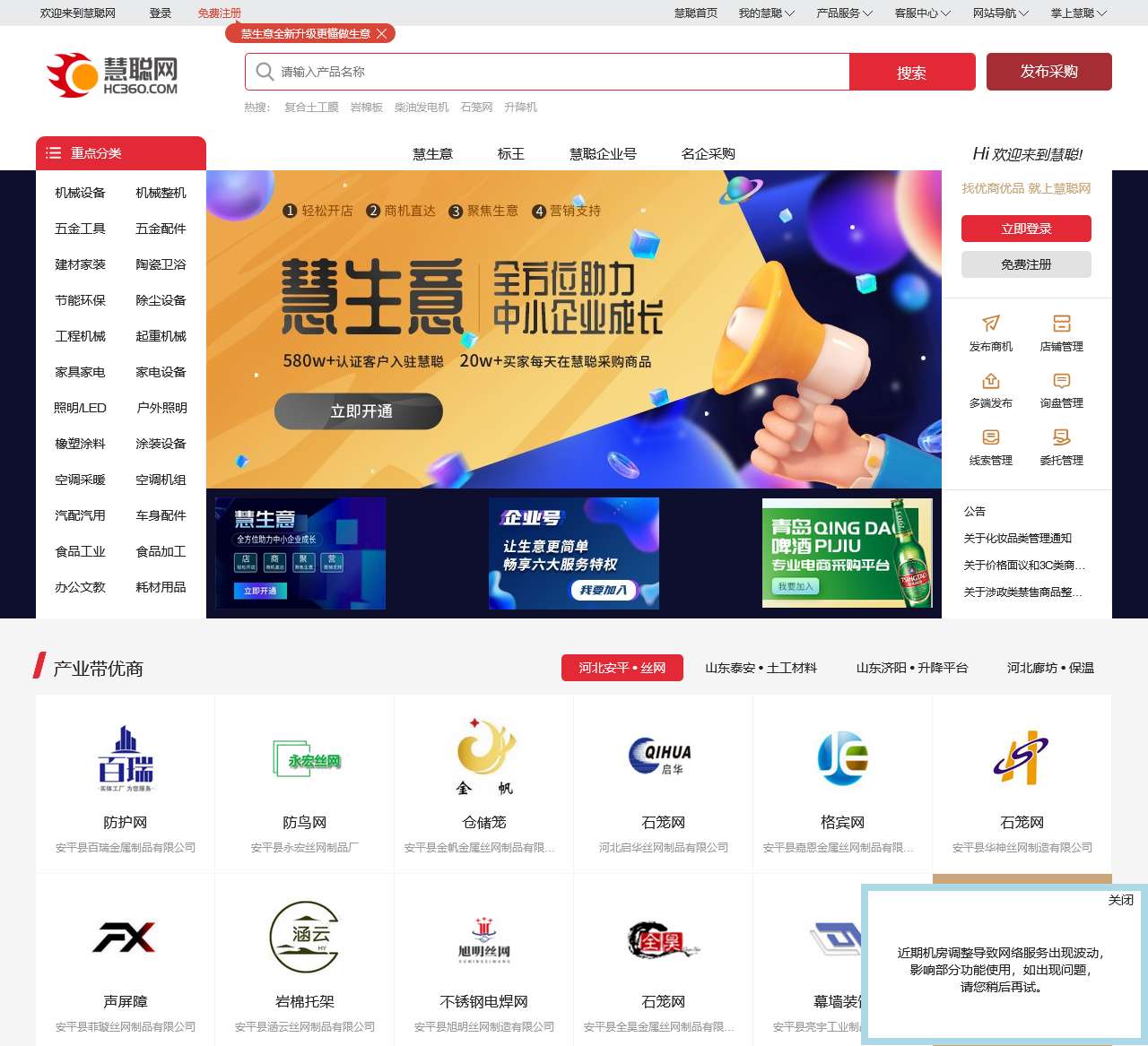 欢迎访问慧聪网,您的中小企业经营服务平台。我们致力于为广大企业提供全方位的生意服务,助您更高效地开展业务。无论是采购还是供应,慧聪网都是您不可或缺的商务合作伙伴。