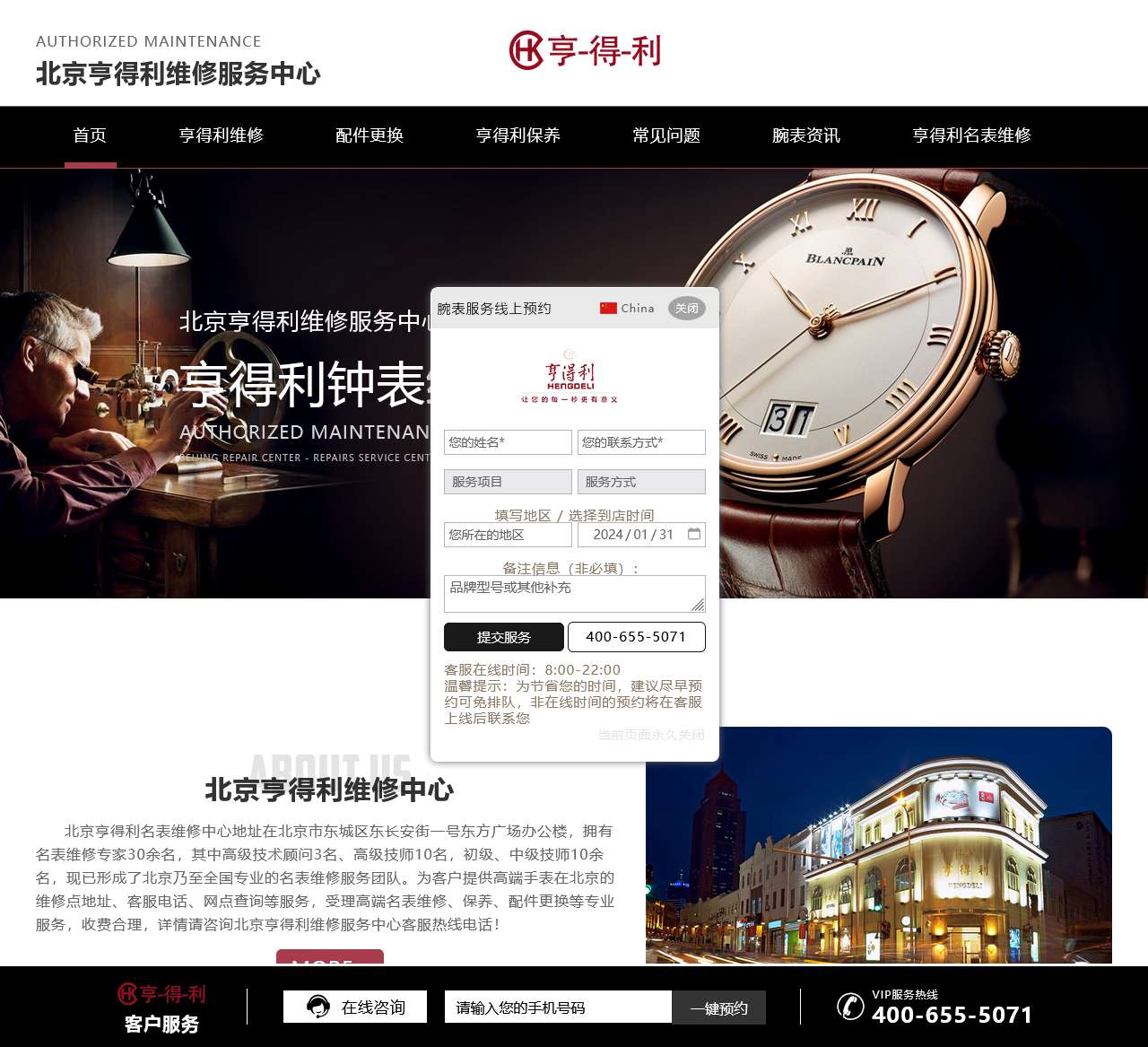 北京亨得利维修中心是亨得利在北京的维修服务网点,为您提供高端手表在北京的维修点地址、客服电话、网点查询等服务,受理高端名表维修、保养、配件更换等服务。收费透明,详情咨询客服热线。