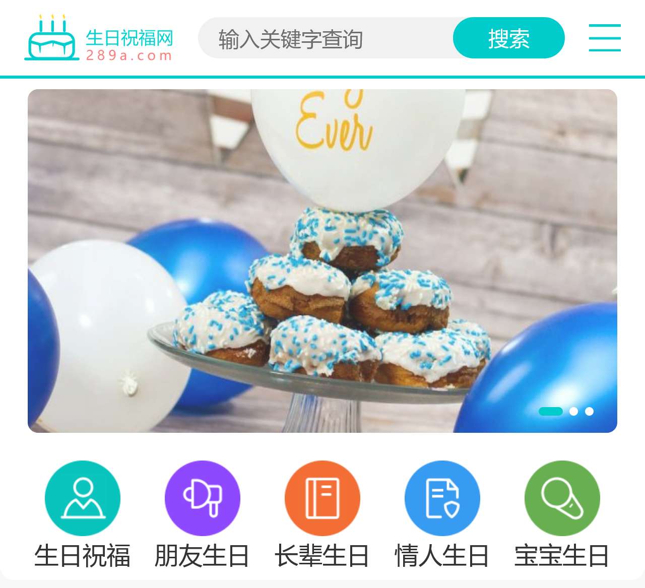 网站首页提供的生日祝福语分类如下: