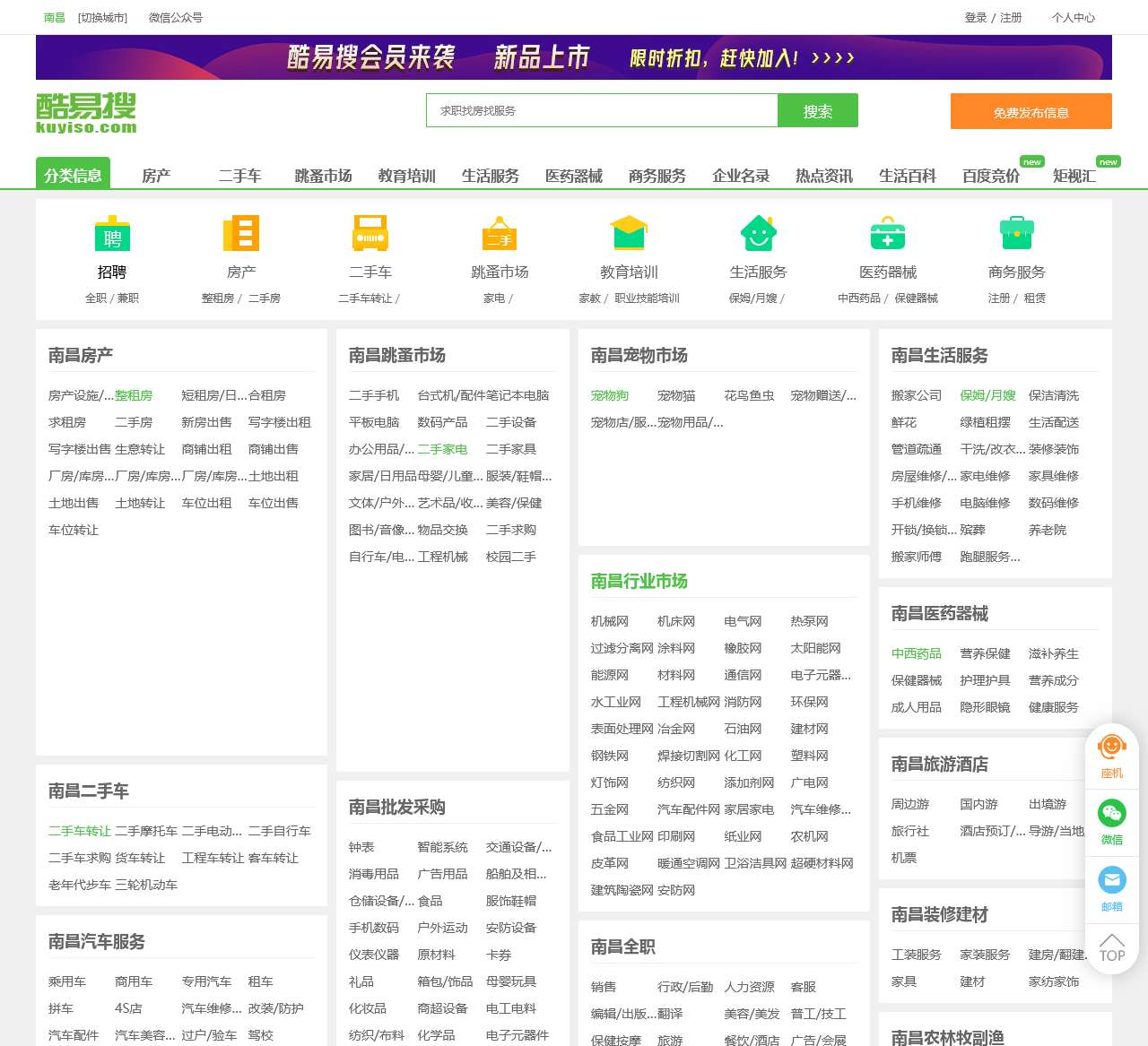 欢迎来到南昌免费发信息平台,您的南昌分类信息网站。我们提供南昌及周边地区的各类信息发布服务,涵盖房产、二手车、跳蚤市场、教育培训、生活服务、医药器械、商务服务等多个领域。