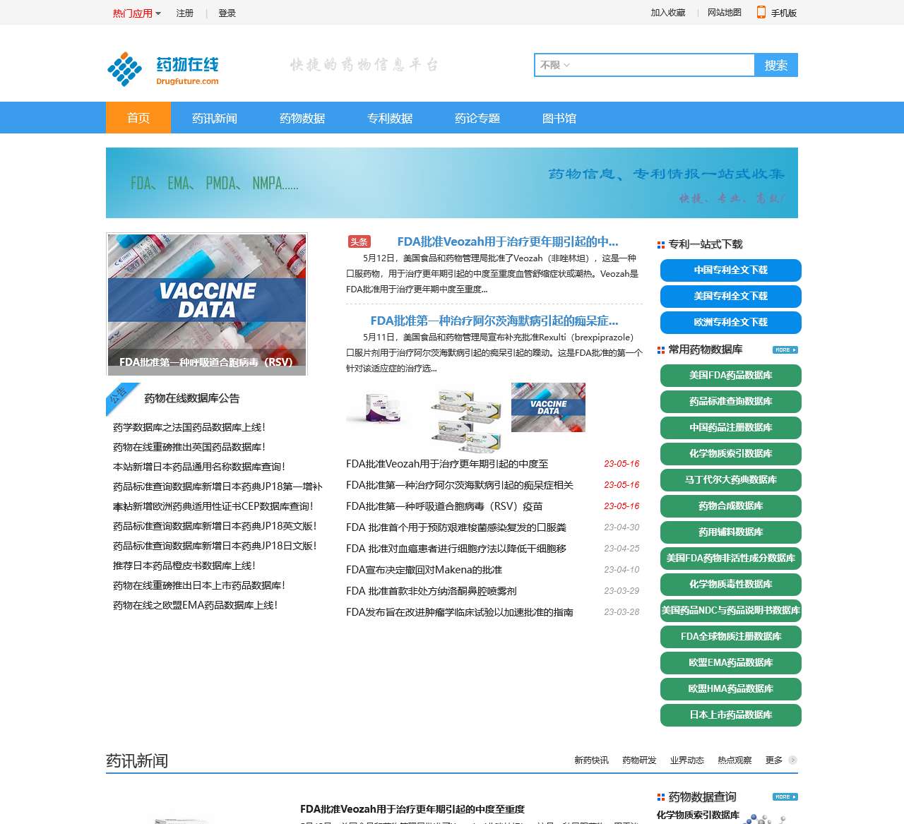 Drug Future药物在线是一家提供全面药物信息的网站,致力于为用户提供权威、准确和及时的药物相关数据。我们汇集了多个重大的药物数据库和专利数据库,方便用户进行药物查询、专利检索和相关研究。以下是我们网站提供的一些主要功能和服务: