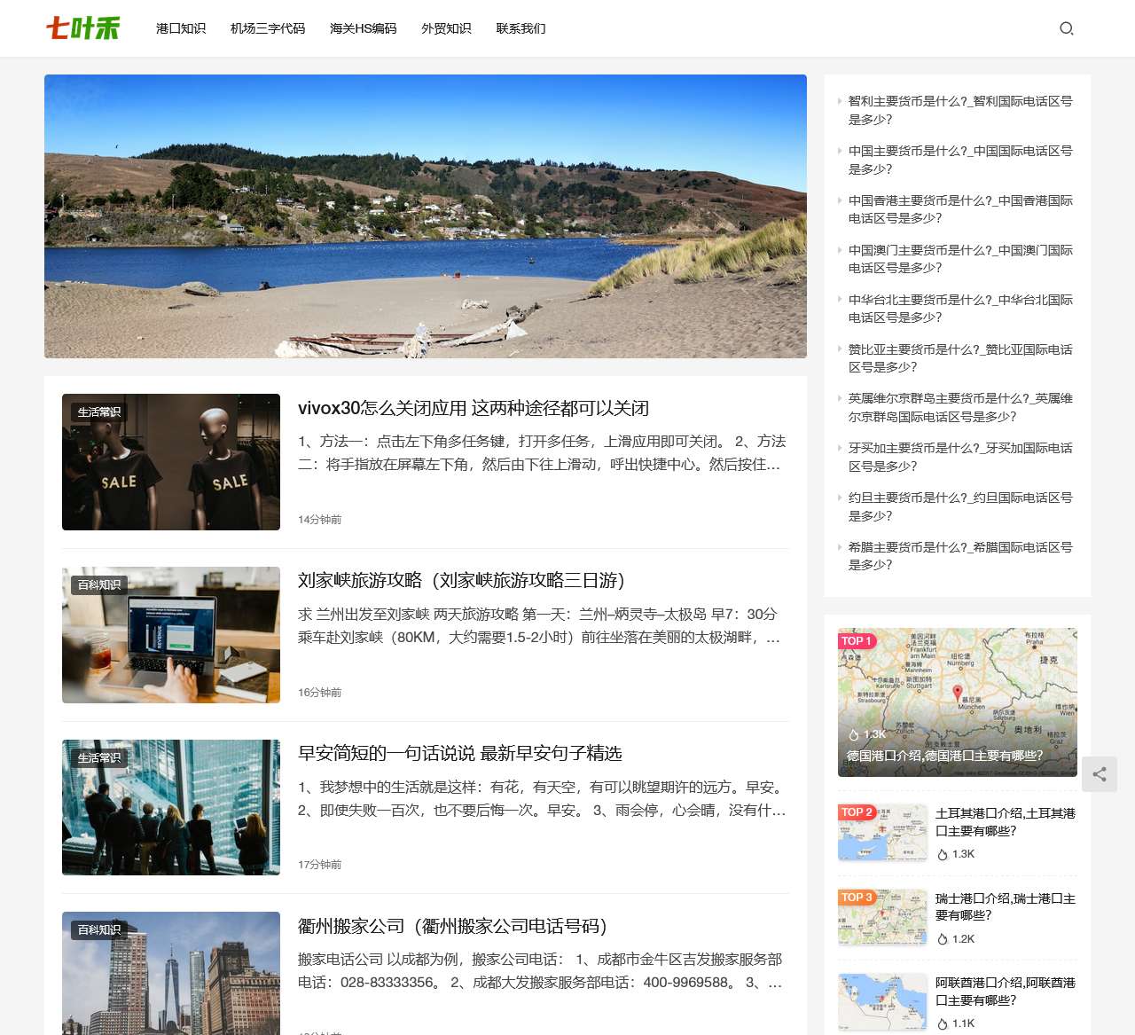 欢迎访问七叶禾,您专业的百科问答知识网站!在这里,您可以找到各种生活常识、百科知识、货币汇率以及港口介绍等丰富的内容。我们致力于为您提供最全面、最准确的信息。无论您是想了解旅游攻略、关闭手机应用还是获取海关编码,七叶禾都能满足您的需求。感谢您的访问,希望您在七叶禾找到所需的信息!
