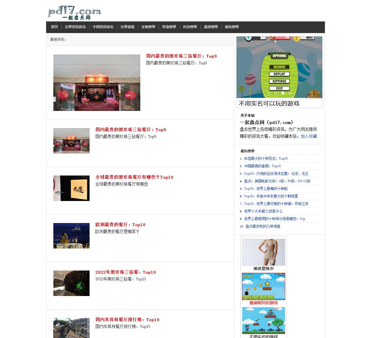 盘点中国与世界上的精彩资讯,各种新鲜内容,满足各类人群的新鲜感、好奇心,让广大网友享受精彩的内容盛宴,其中热门资讯如:世界十大奇迹_世界十大未解之谜_世界十大名表_世界十大禁曲等等。