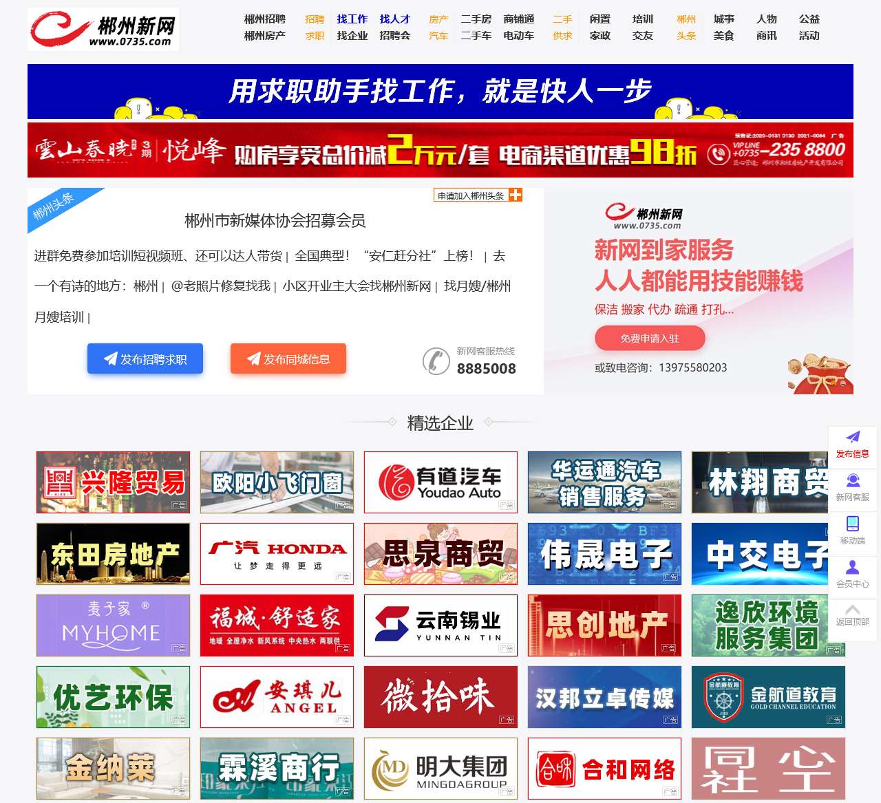 郴州综合性分类信息门户网站,为你提供郴州招聘、房产、房屋租售、二手、汽车、交友、黄页、团购、宠物、周边游等真实有效的分类信息,充分满足您免费查看/发布信息的需求。创郴州本地好的分类信息门户网站