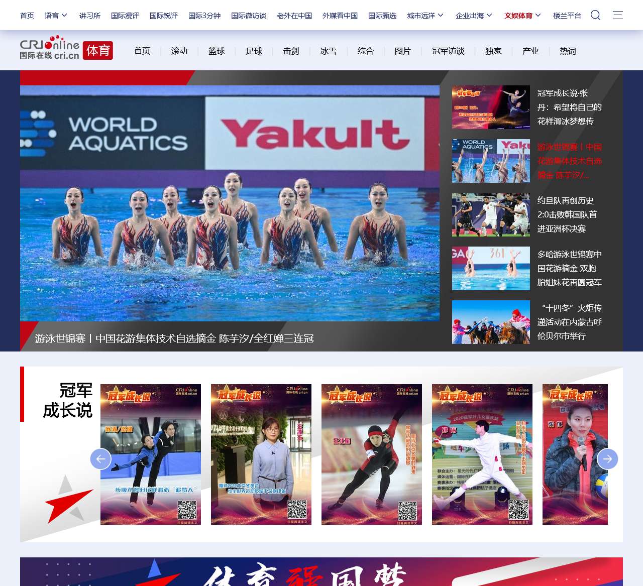 聚焦国内外足球、篮球、排球、乒乓球、羽毛球、击剑、冰雪等体育赛事,国际在线体育为受众提供最全面专业的体育新闻和赛事报道,原创产品冠军成长说,分享冠军历程,传递榜样力量。聚焦赛场高光时刻,记录超越自我的动人瞬间,一同感受体育的洪荒之力。