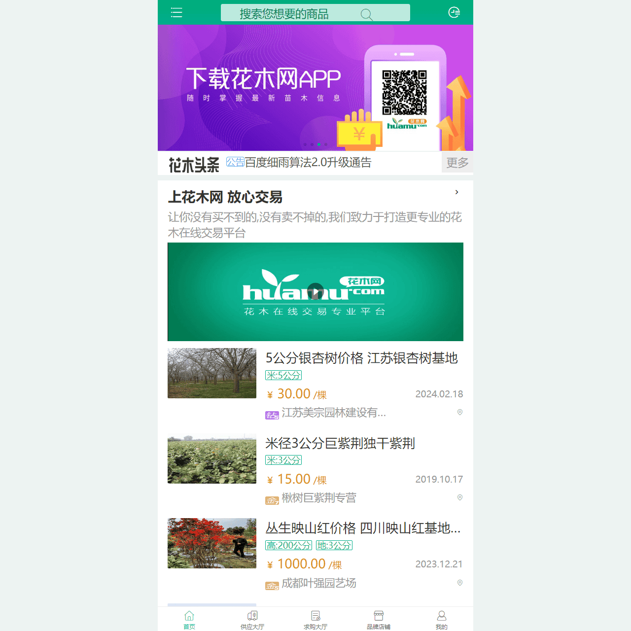 除了以上功能外,花木网还提供了最新的供应信息,如5公分银杏树价格和米径3公分巨紫荆独干紫荆等,让用户及时了解市场行情。无论您是花木行业的从业者还是爱好者,花木网都能为您提供全方位的服务,助您轻松交易,放心选购。
