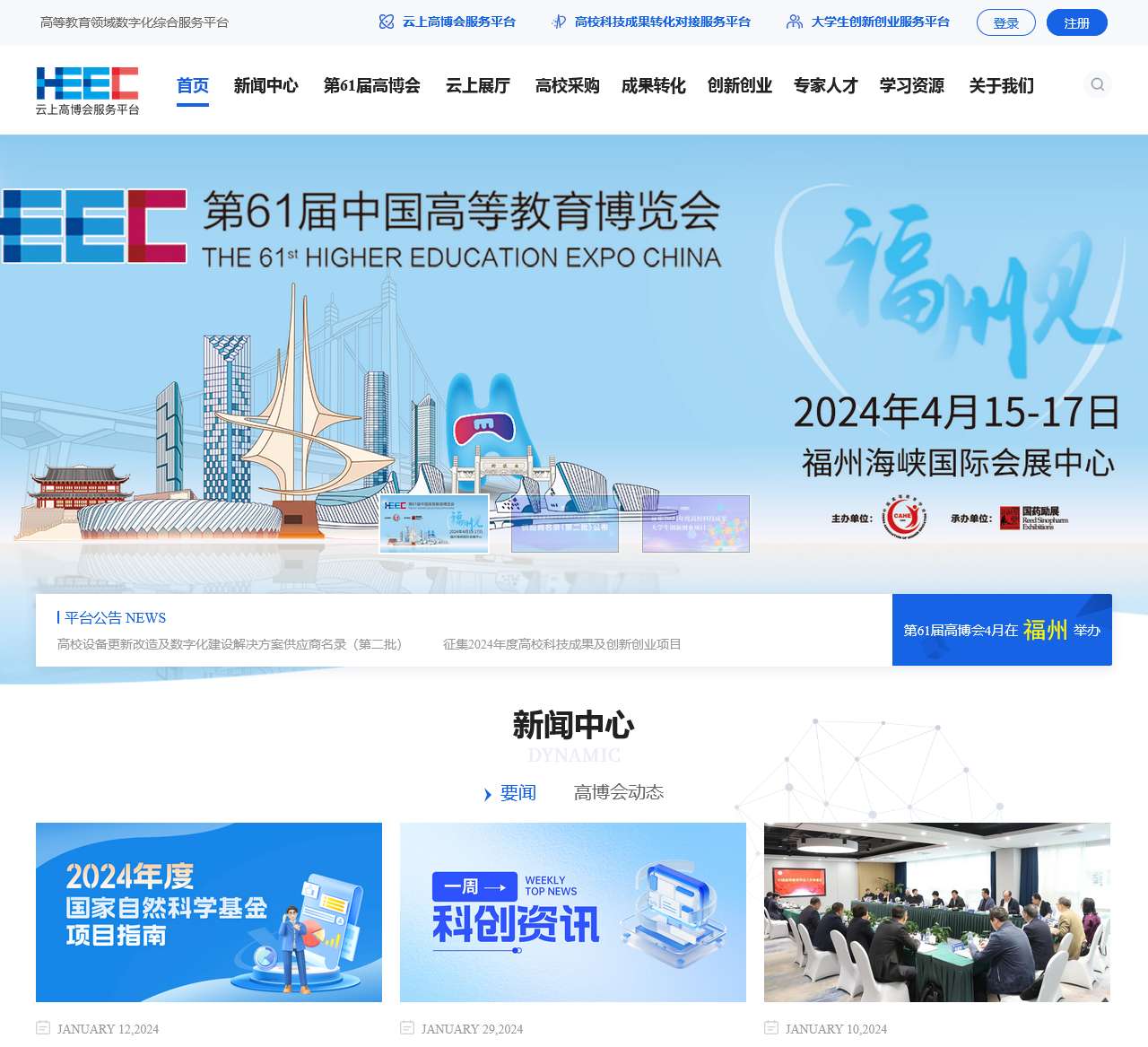 另外,云上高博会还征集2024年度高校科技成果及创新创业项目,为高校设备更新改造及数字化建设提供解决方案。同时,该平台定期发布高等教育相关的新闻动态,例如国家自然科学基金项目指南、科创资讯、中国高等教育学会工作务虚会等。