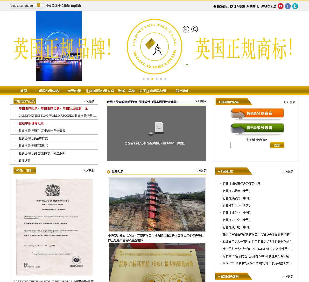 吉尼斯世界纪录和扛旗世界纪录都是注册在英国伦敦,和吉尼斯世界纪录官网具有相同的法律地位.和吉尼斯世界纪录官方网站只是品牌不同.比吉尼斯世界纪录官网多了个行业扛旗认证.是一家专门收录体育及非体育\赛事及非赛事\搜罗所有的世界之最的世界纪录收录机构.