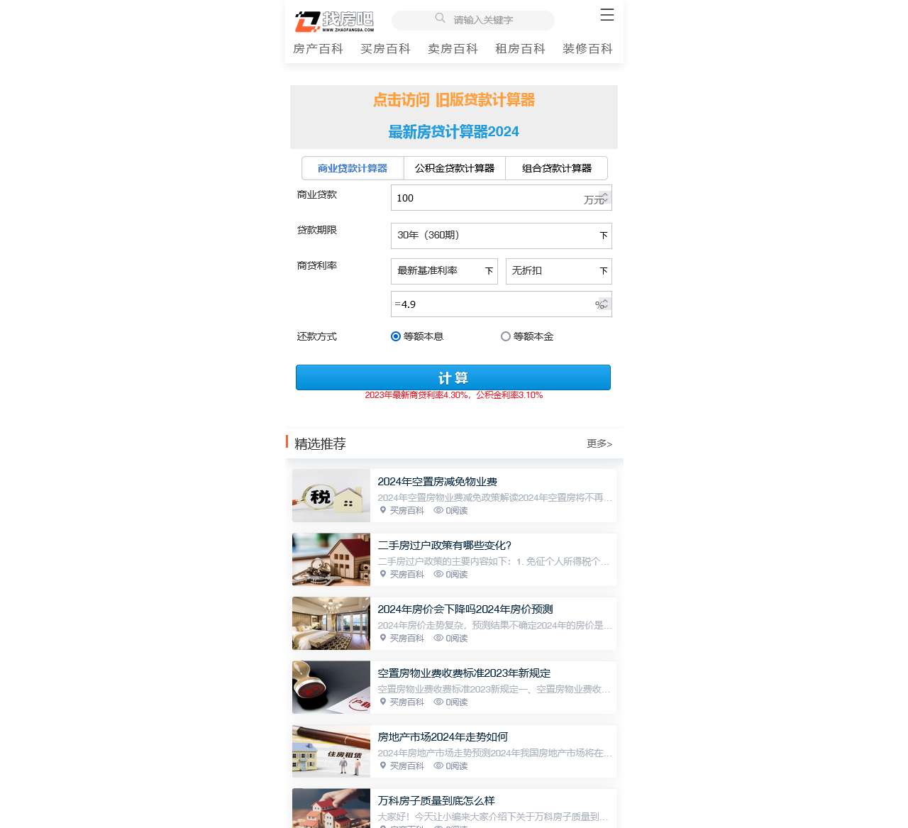 想要了解2024年的房贷情况?欢迎使用我们的房贷计算器!无论您是买房、卖房、租房还是装修,我们的百科都能帮到您。您可以点击访问旧版贷款计算器,或者使用我们的最新版房贷计算器,包括商业贷款、公积金贷款和组合贷款计算。以下是一些常用功能: