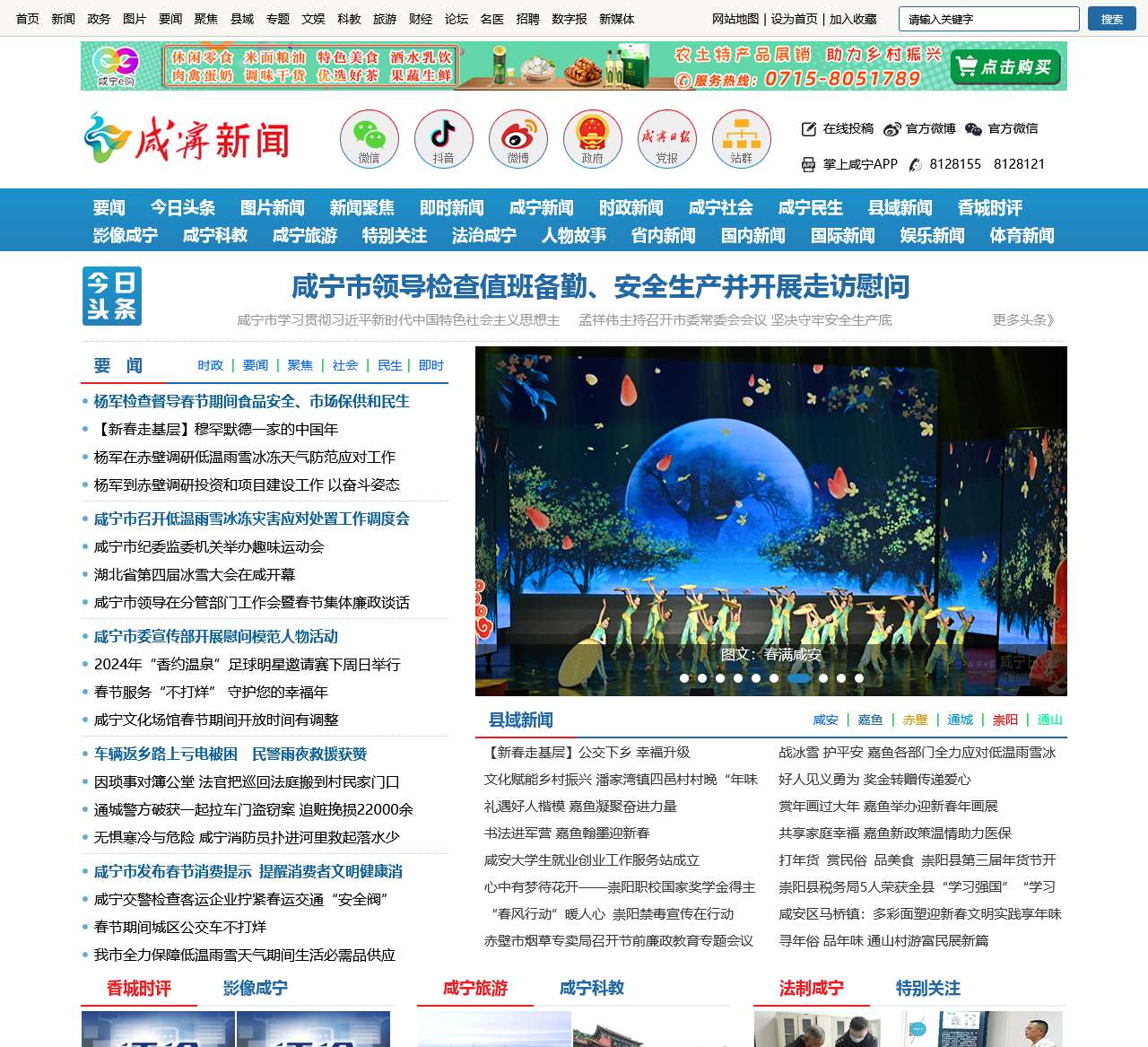 咸宁新闻是一家权威的新闻门户网站,提供全面及时的新闻报道,涵盖政务、要闻、聚焦、县域、专题、文娱、科教、旅游、财经等多个领域。以下是该网站首页内容的整理: