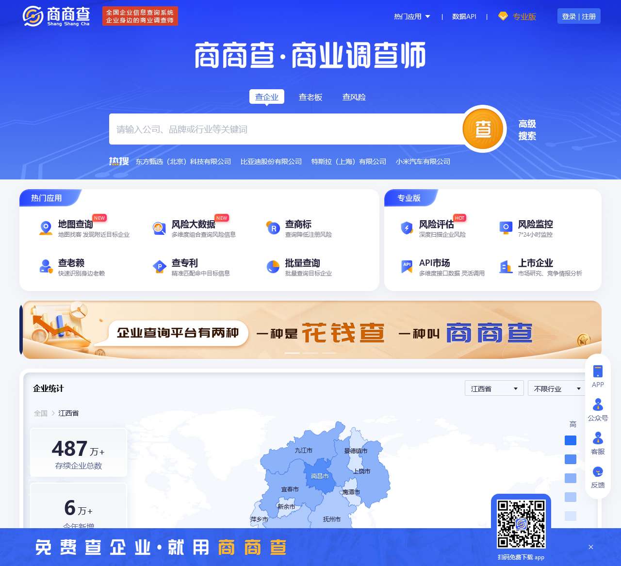 商商查是一款免费的企业信息查询工具,提供免费查询工商信息、企业法人股东、主要成员、变更记录、企业风险、企业股权、网站icp备案、商标、软著、app、对外投资,年报,企业财务信息,上市信息等相关信息。快速查找企业信息,尽在商商查企业工商信息查询平台