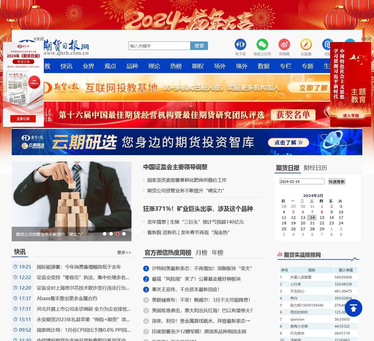 期货日报网是一家专注于期货行业的综合性新闻平台,提供全面及时的期货资讯服务。以下是网站首页的主要内容整理: