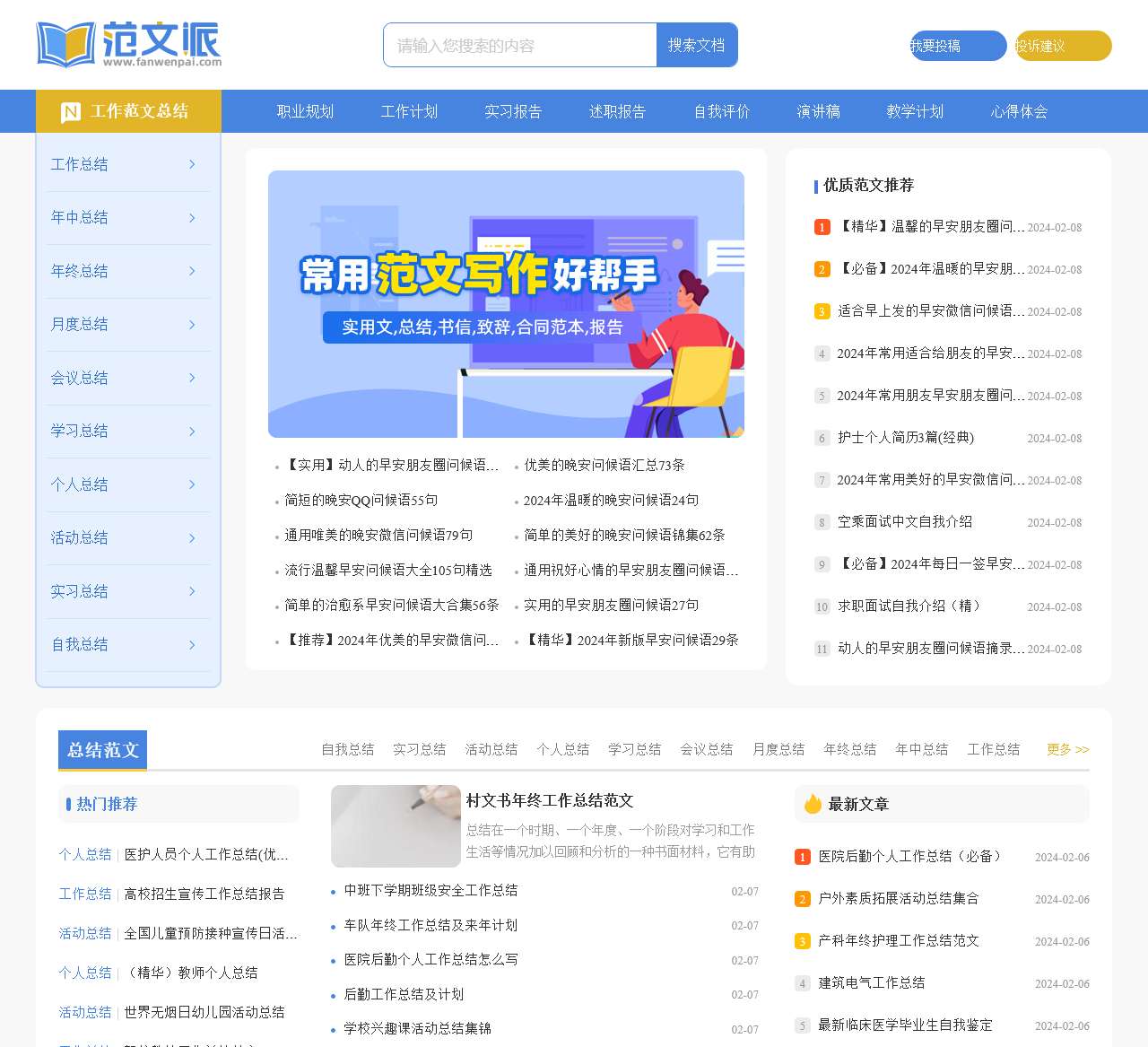 范文派为您提供各种工作,教学,学生,日常实用文写作指导及范文参考,内容主要有总结范文,报告体会,职场信函,教学范文,讲话致辞,合同范本等。