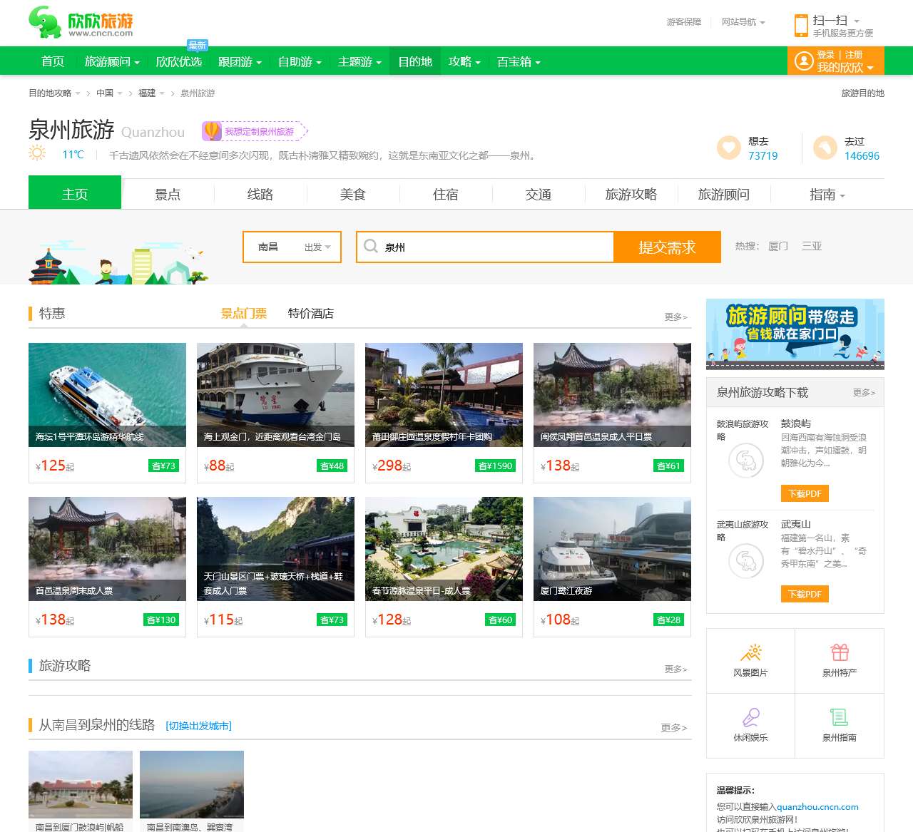 泉州欣欣旅游网,提供福建泉州旅游景点推荐、2月泉州旅游攻略、泉州旅行社、泉州旅游线路、泉州酒店预订、泉州旅游地图等出行指南及旅游服务●欣欣旅游网 CNCN.com 更新时间:02月14日02点