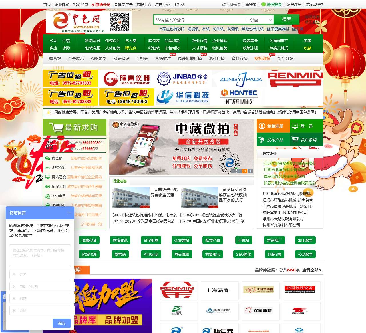 中包网(pack.cn),包装,印刷,包装机械,印刷机械,包装印刷材料,全球领先的包装行业门户网站,为包装企业提供网络推广,网上贸易,行业资讯,包装展会,包装人才等服务,为各行各业提供包装机械,印刷机械,包装材料,包装制品,包装印刷加工等企业信息,产品信息,供求信息,价格行情等服务.