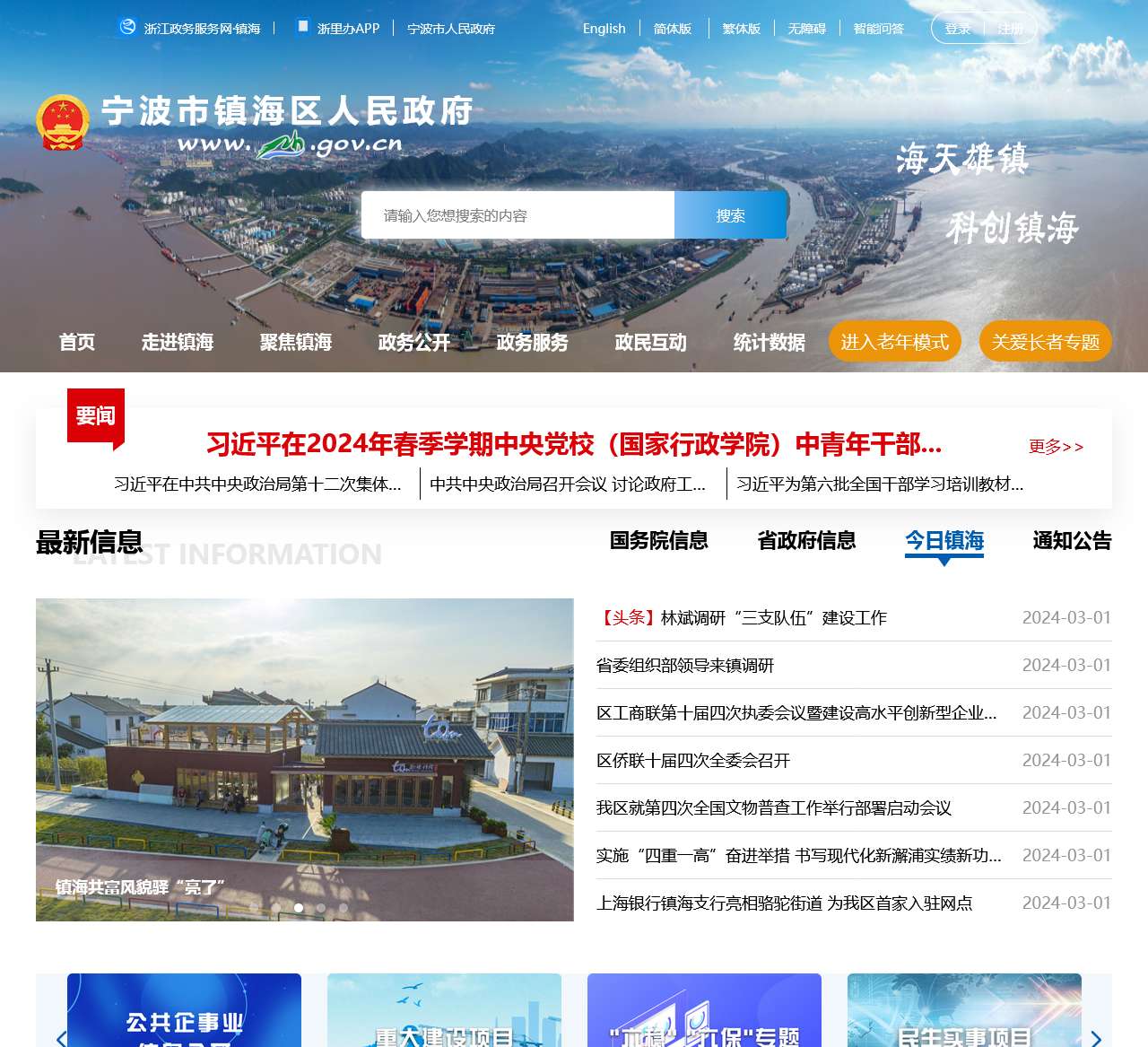 镇海区政府网站首页提供了丰富的政务服务和信息资源,为市民提供了便捷的服务渠道和及时的政府动态。以下是首页内容的整理: