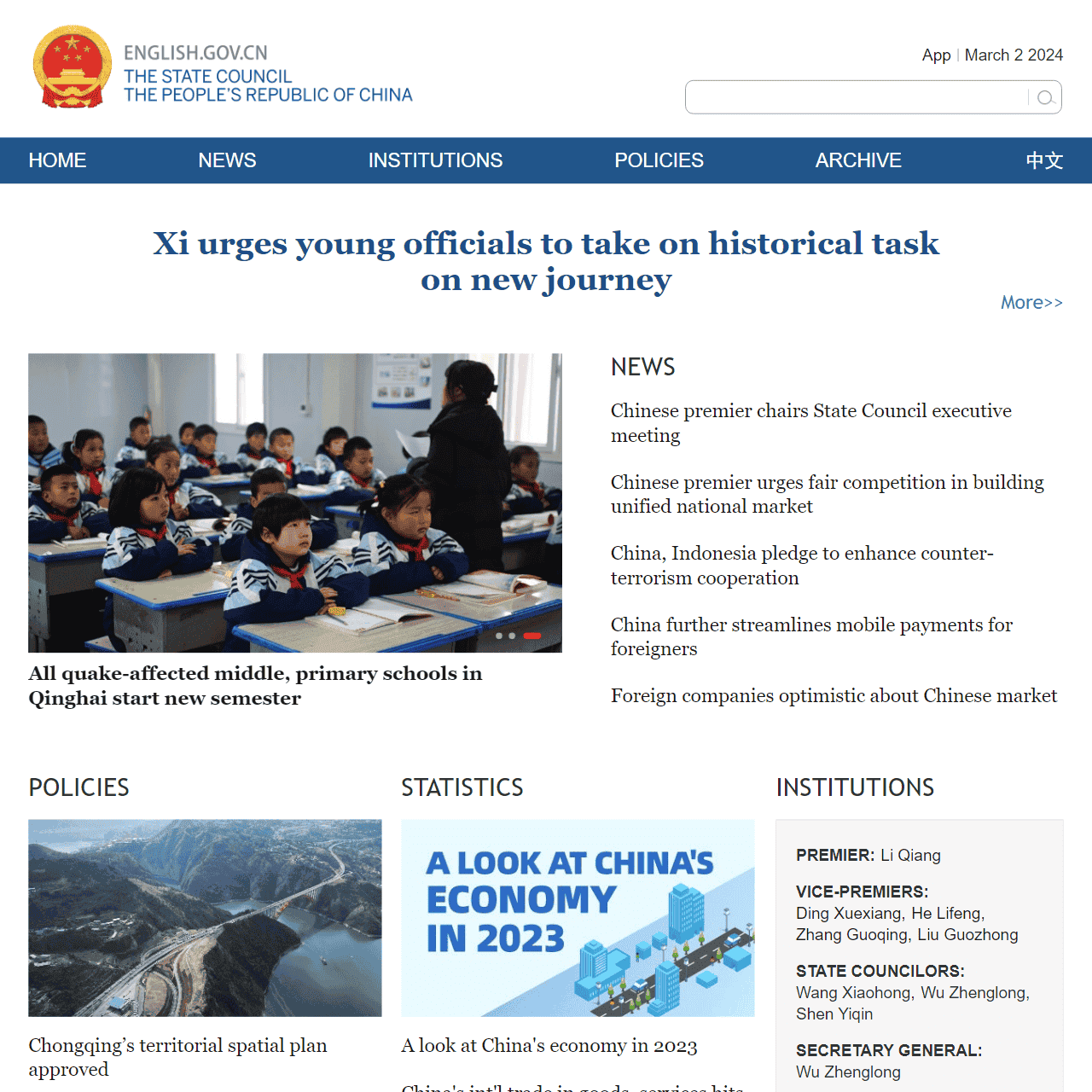 Get quick, easy access to all services, policies, news and information about the Chinese government and Chinese leaders