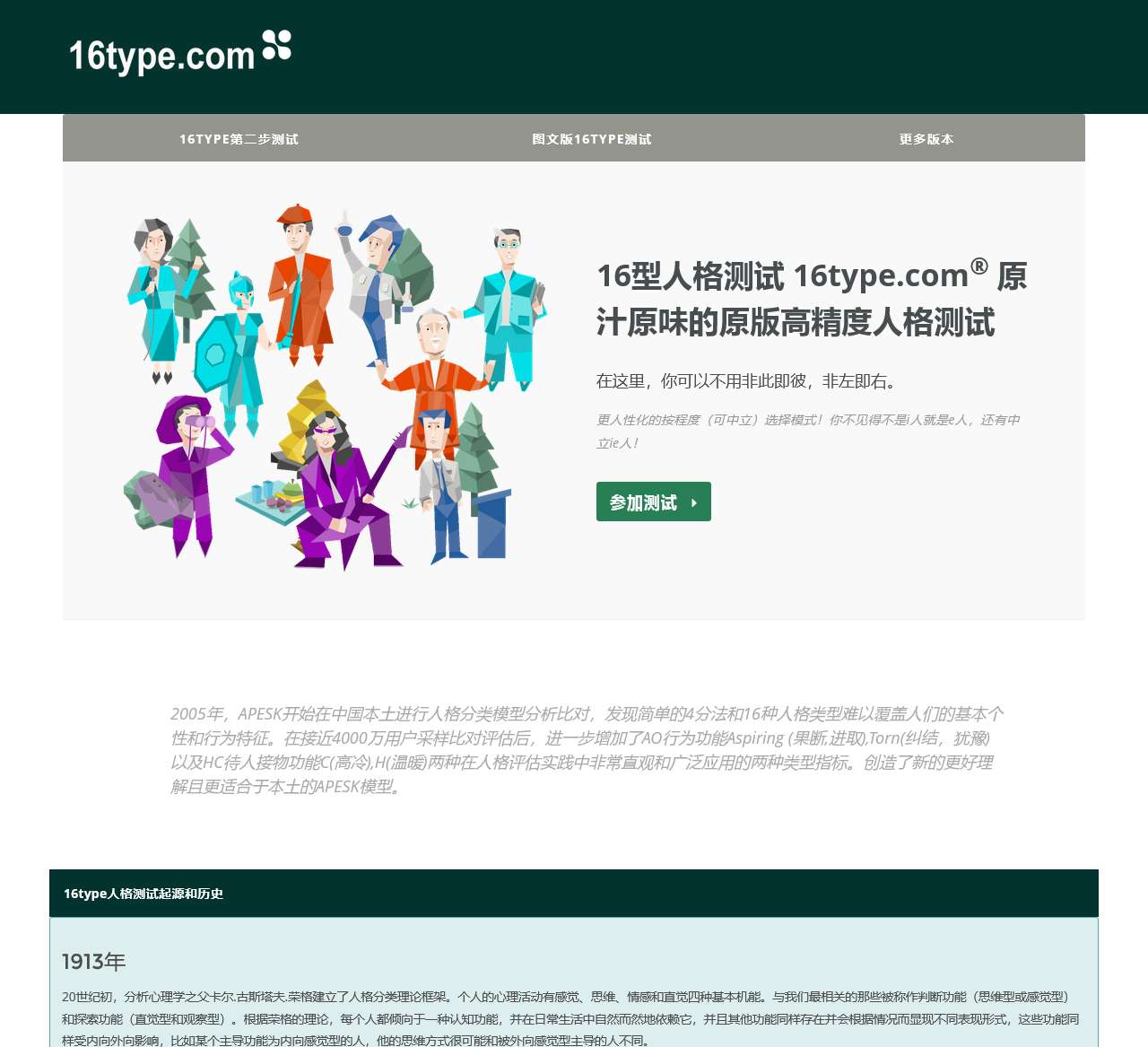 欢迎来到16type.com,您的人格探索之旅的引领者!我们提供瑞士荣格第二步测试、图文版16type测试、荣格八维测试、动画版16type测试以及更多版本,助您深入了解自我,揭示个性的多面性。