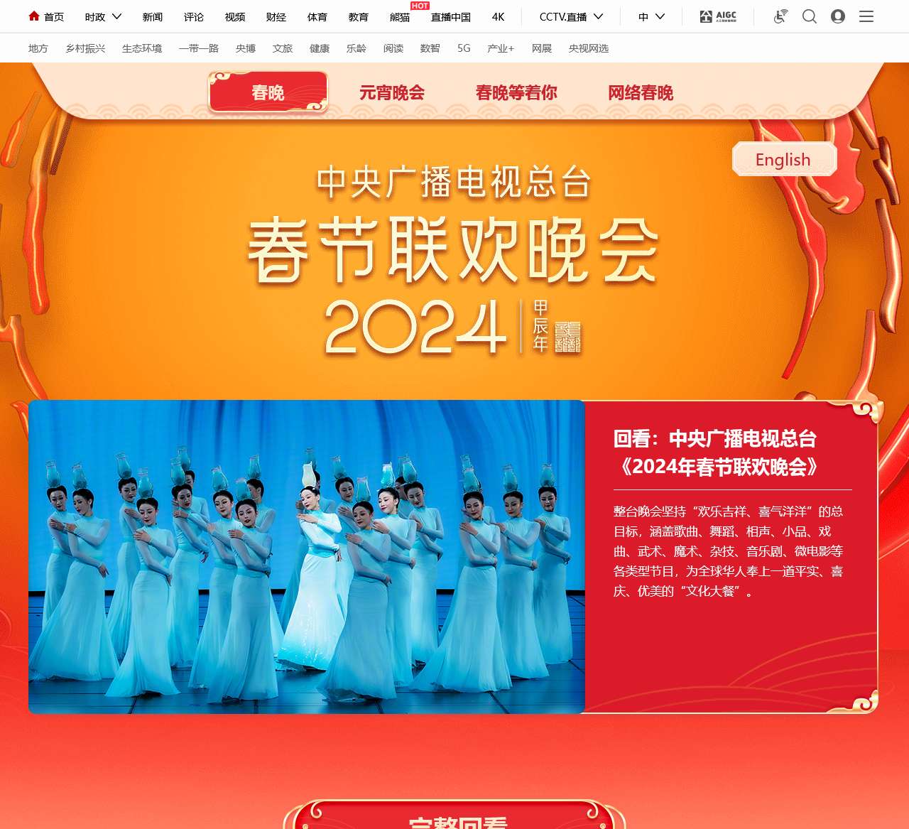 - 完整回看: 《2024中央广播电视总台春节联欢晚会》(共4部分)