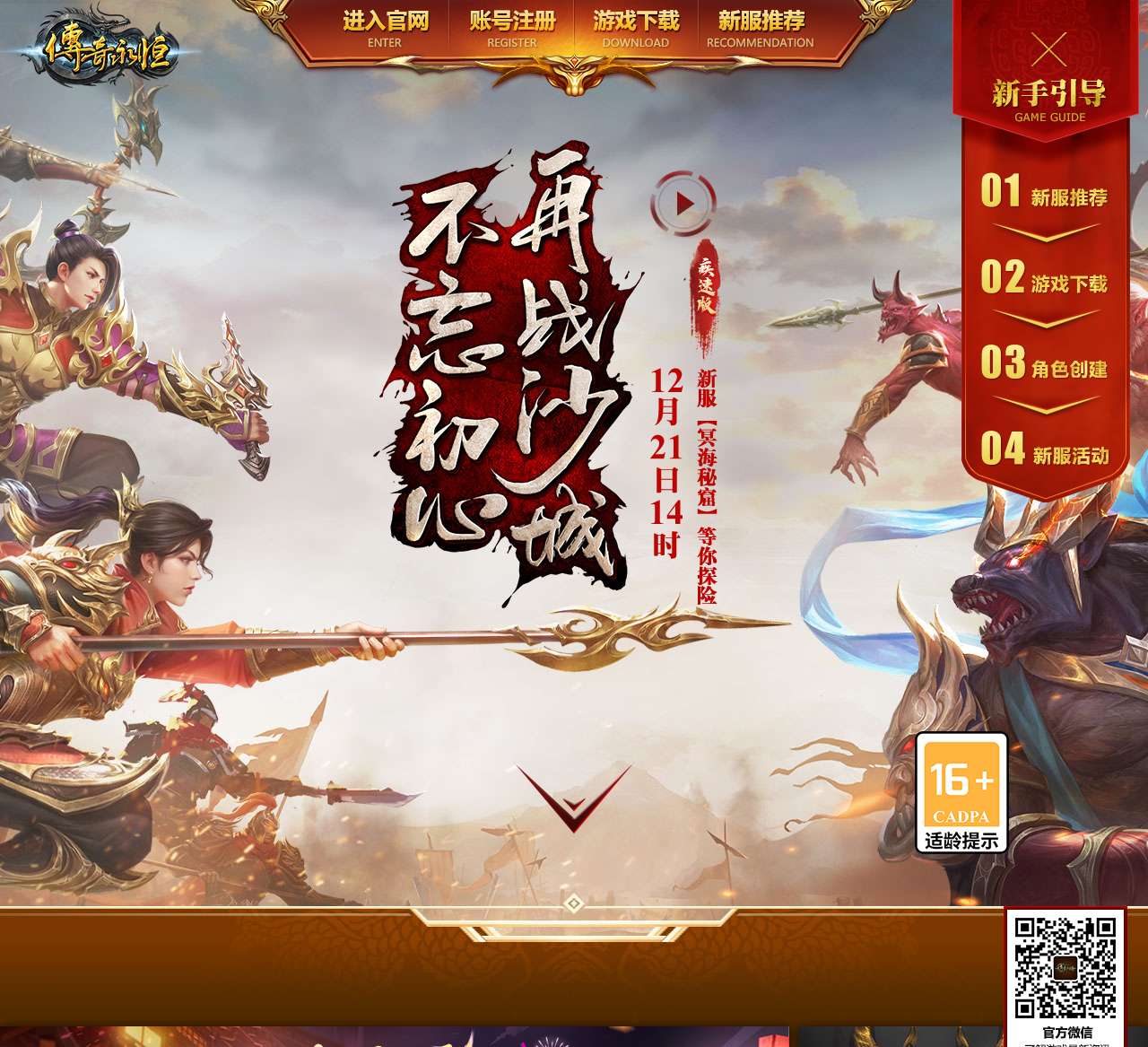 进入官网,注册账号,下载游戏,一切尽在《传奇永恒》官方网站!我们持有增值电信业务经营许可证:沪 B2-20100008,沪ICP备14052292号-2,沪公网安备31011502007143号。感谢您的支持,让我们一同不忘初心,再战沙城!