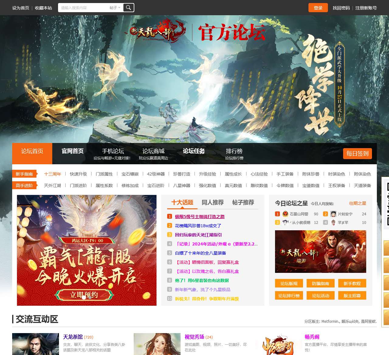 欢迎来到《新天龙八部》官方论坛,迎接游戏的第十二周年庆典!本论坛由Discuz!提供技术支持,为广大玩家提供交流、分享、讨论的平台。无论是游戏玩家还是新手玩家,都能在这里找到有趣的内容。
