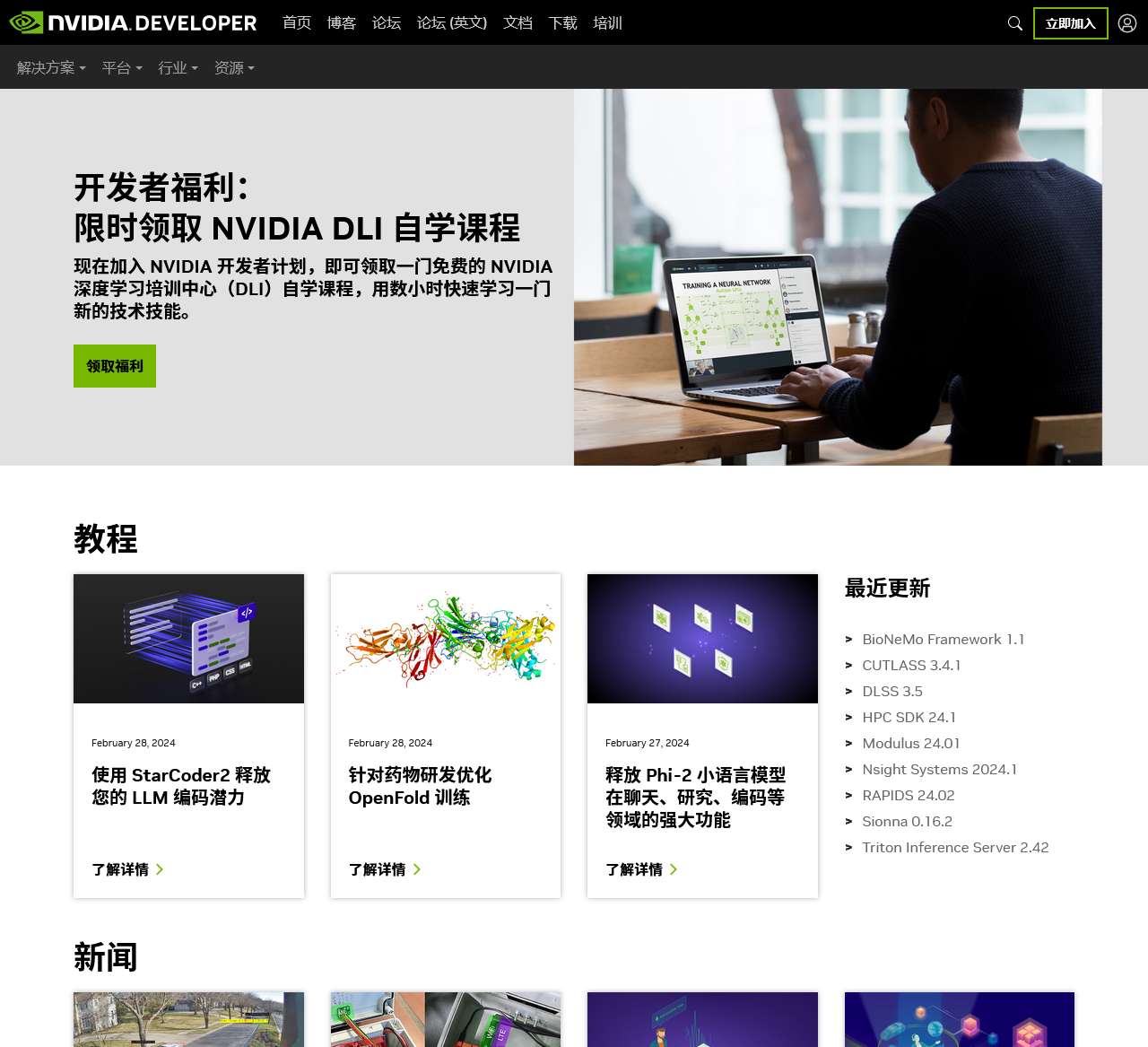 NVIDIA开发者平台致力于为开发者提供全方位的人工智能 (AI) 和深度学习解决方案。通过我们的平台,您可以探索各种领域的AI应用,从对话式AI到机器学习、计算机视觉和推荐系统。无论您是从事科学可视化、嵌入式与边缘AI、机器人技术,还是硬件开发,我们都有专业的工具和支持,助您开创未来。