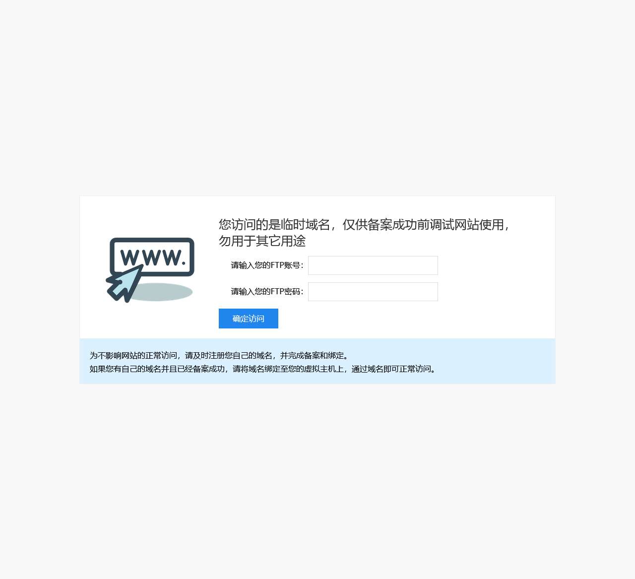 关于您访问的是临时域名,仅供备案成功前调试网站使用,勿用于其它用途特别声明