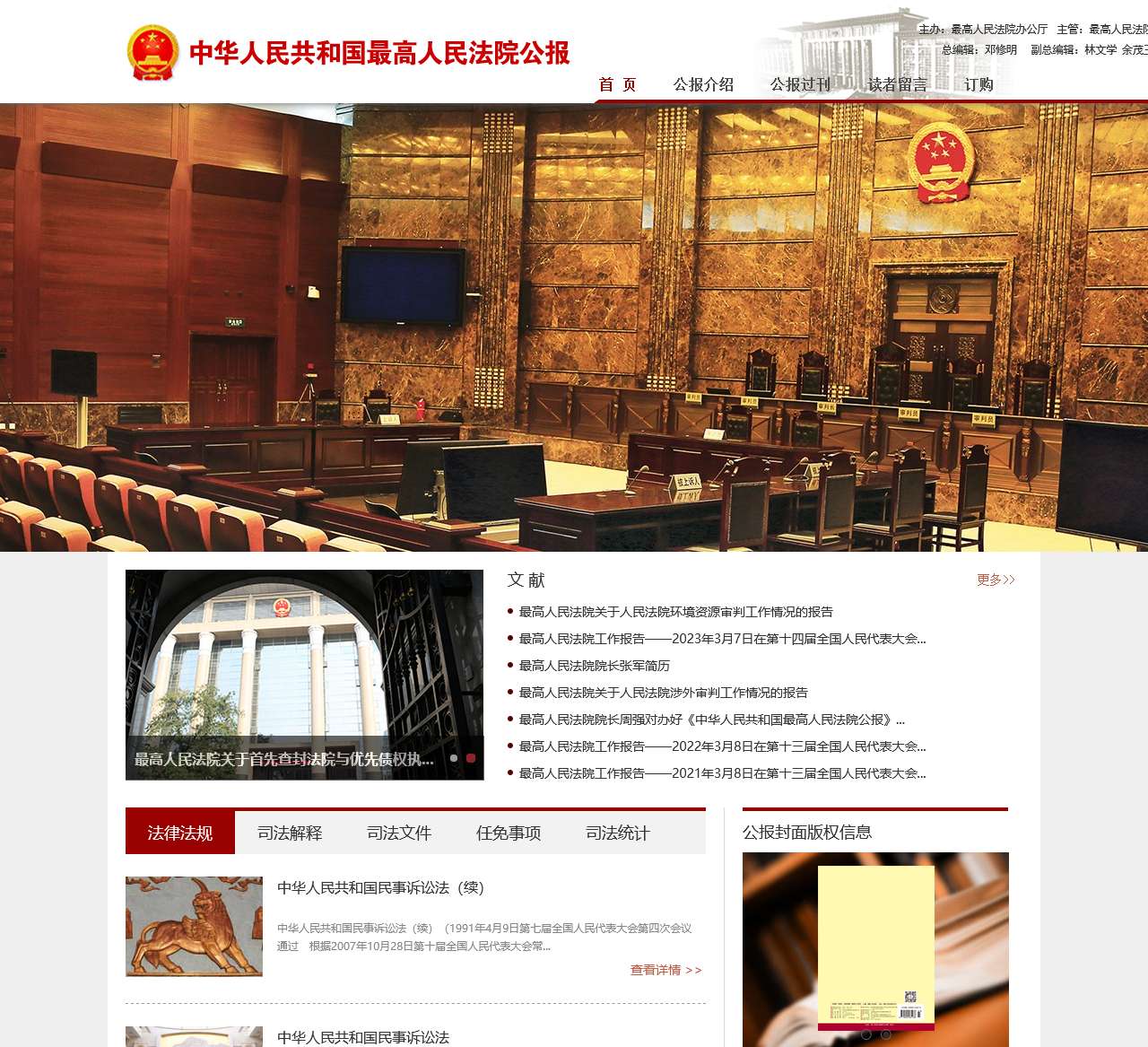 欢迎访问中华人民共和国最高人民法院公报官方网站。本站汇聚了最高人民法院的工作动态、司法解释、法律法规等信息,为广大读者提供权威可信的法律信息服务。