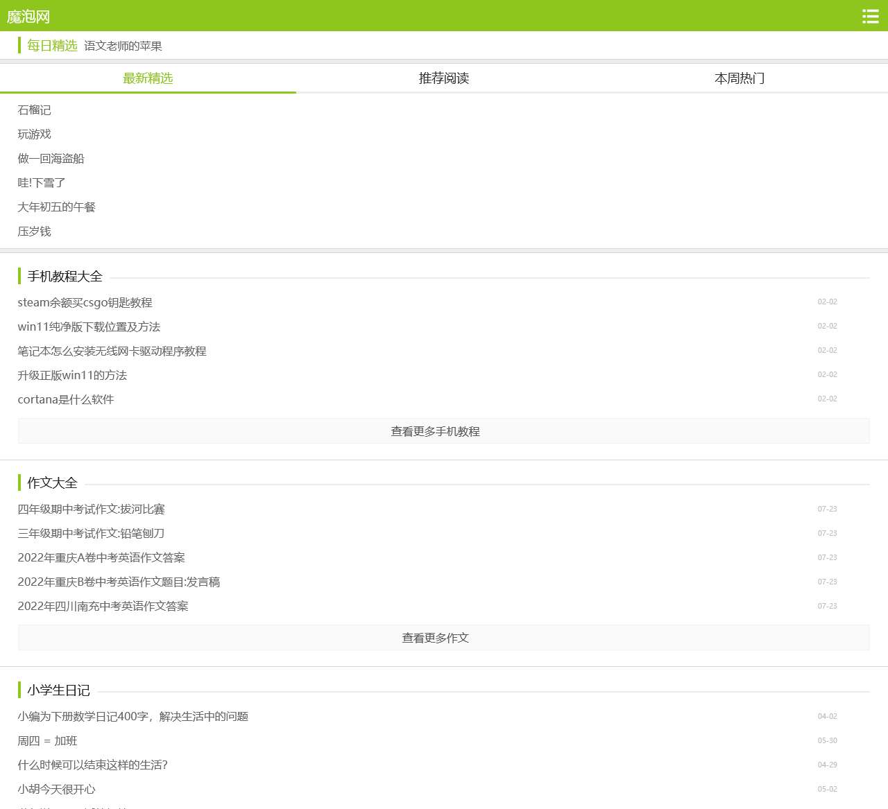魔泡网-提供小学生日记,初中日记,高中日记等优秀日记大全