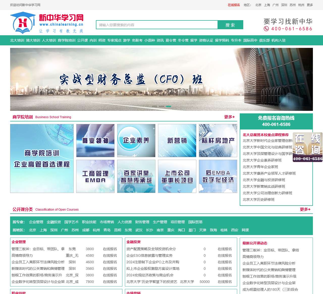 新中华学习(原新中华教育网)是自2006年就开展企业管理类培训的企业培训机构平台,我们在企业内训和公司培训课程公开课,EDP培训和EMBA班等领域在全国有一定影响力,依托北大,人大,清华等优秀师资,线上线下教学相结合,为全国企事业单位中高层基层管理者提供全年企业培训服务。