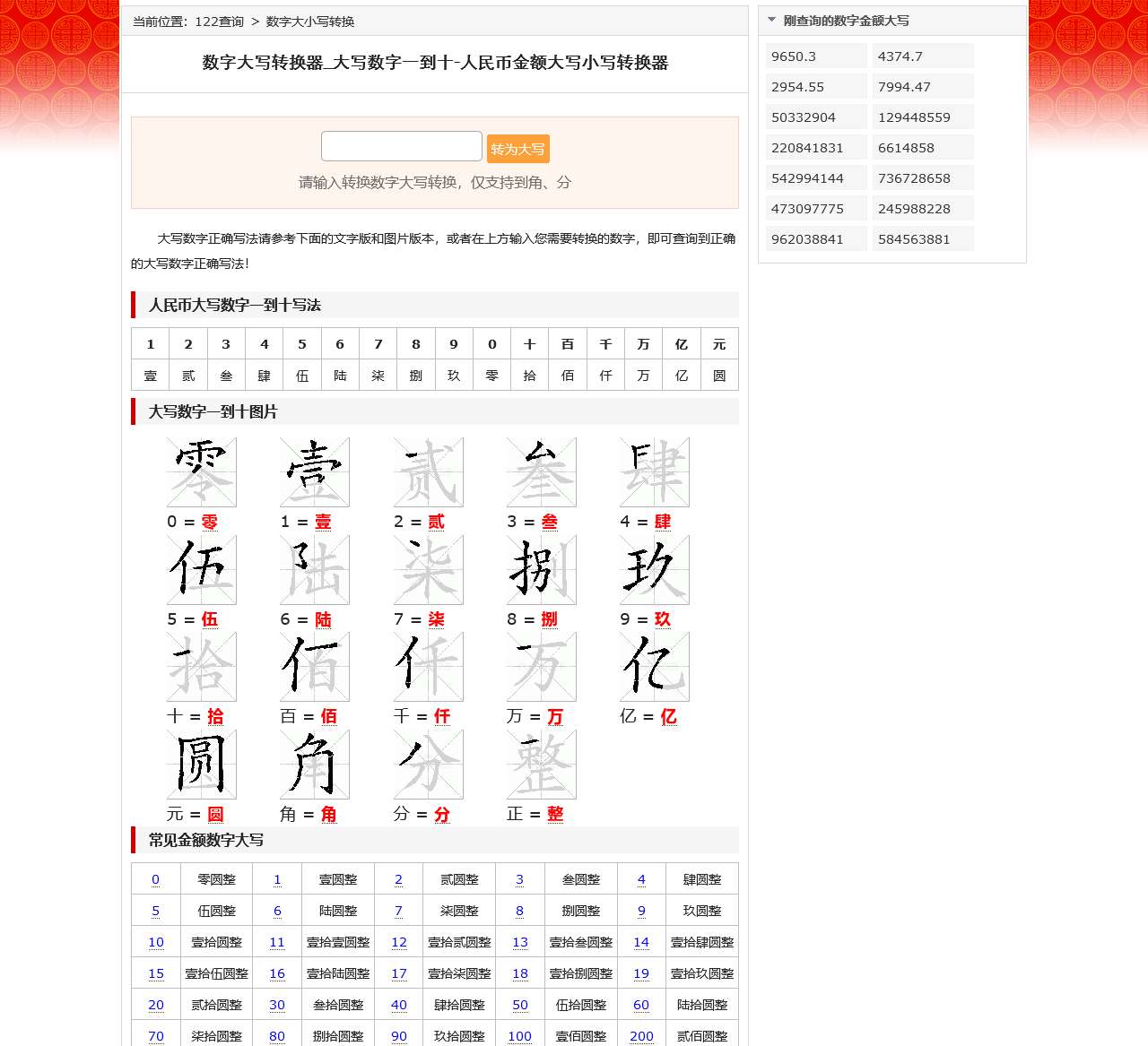 用户可以输入人民币金额,网站将自动转换为大写形式,方便书写财务报表等场景。